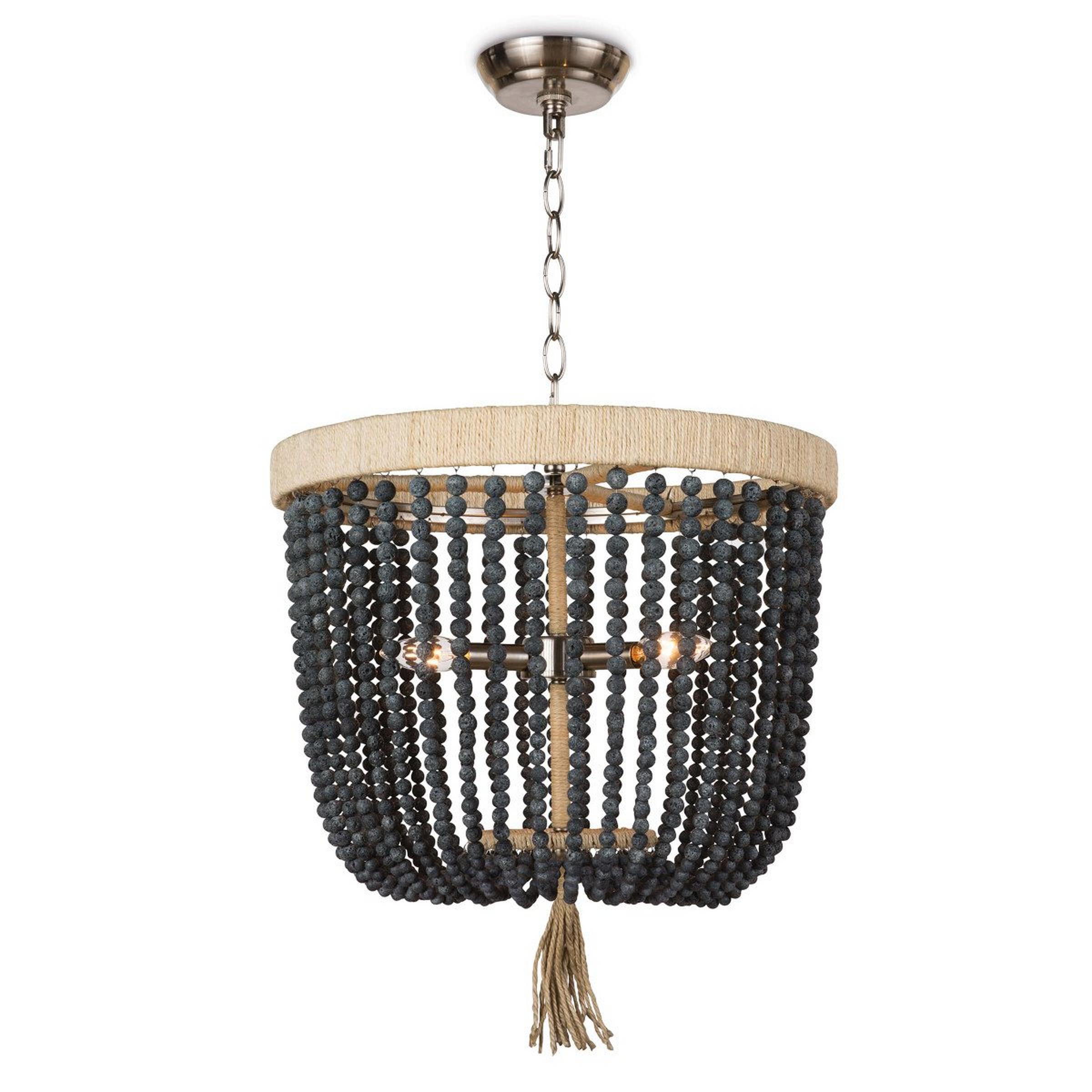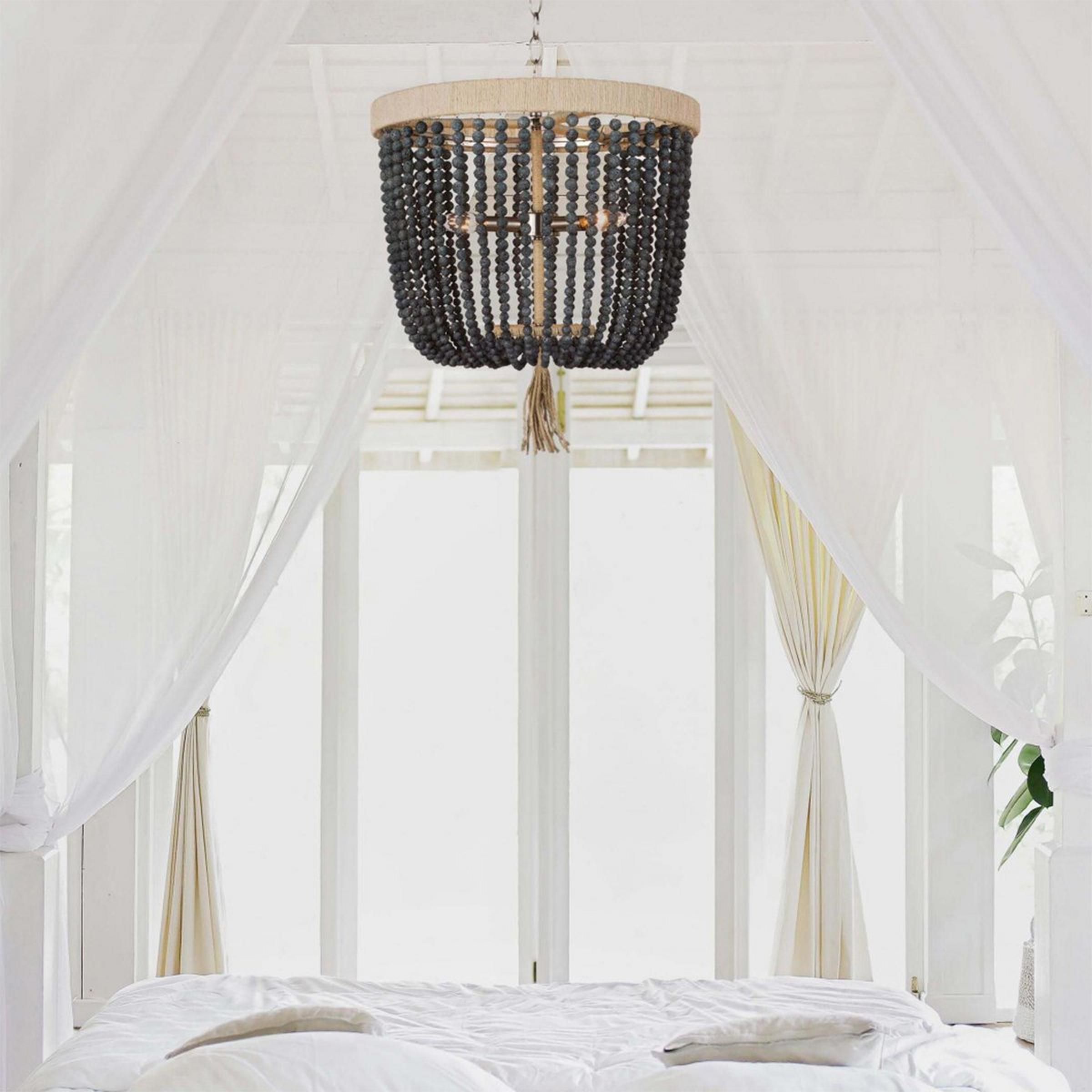 The Boho Cottage Chandelier Collection will have your home shining bright with a trendy style. The waterfalls of bead strands build the rounded body with added rattan accents to play up the bohemian design. Versatile with its chosen location, this fixture will hang beautifully in a foyer to your kitchen or dining room.
