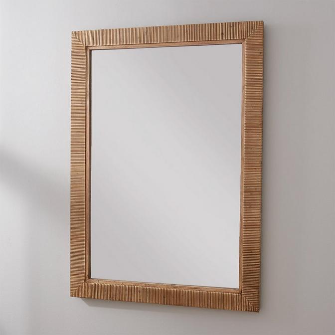 Natural materials of light oak and rattan come together to create the frame of our Brayden Mirror. Its themes of casual coastal and transitional combine form a neutral accent that can float from your living room to the dining room.