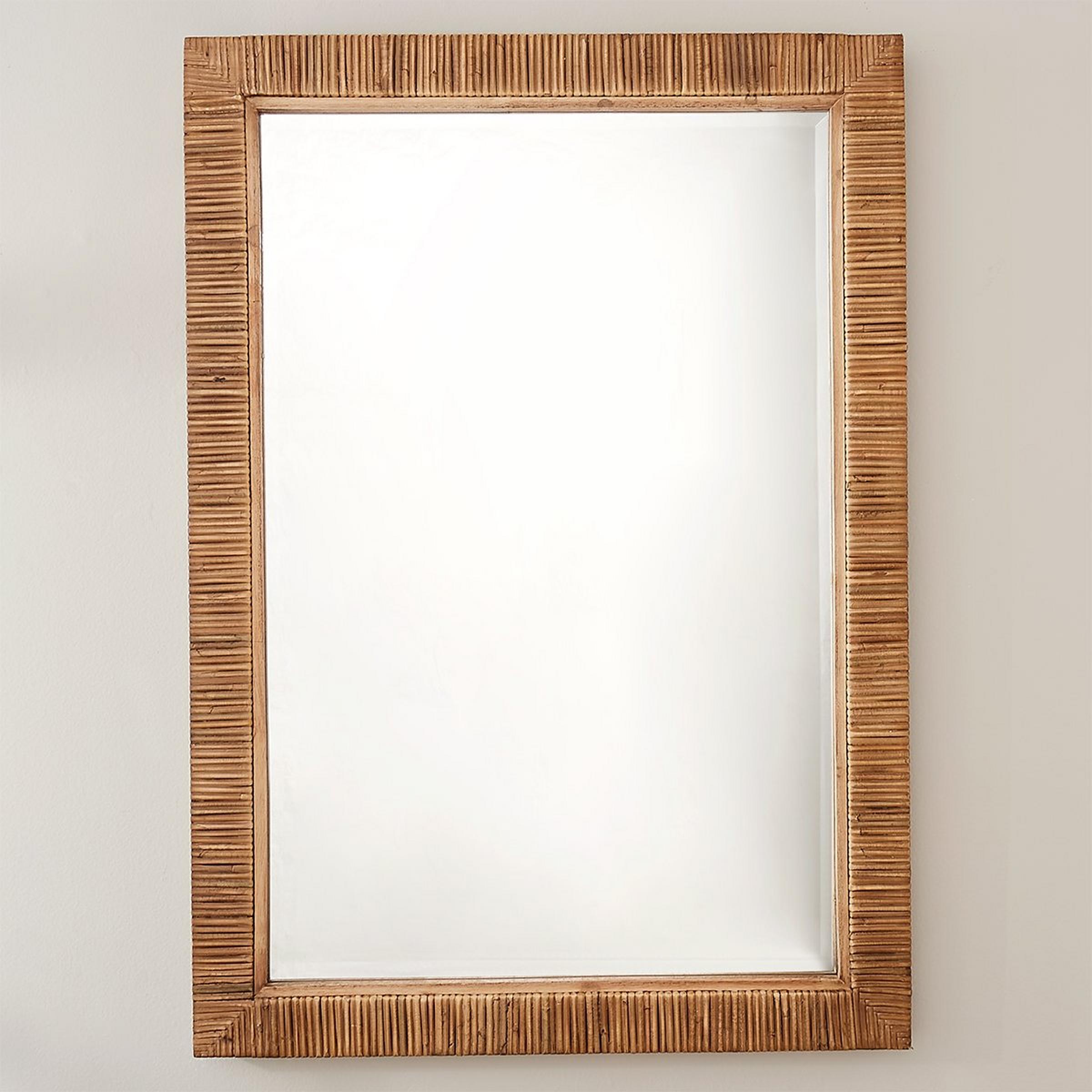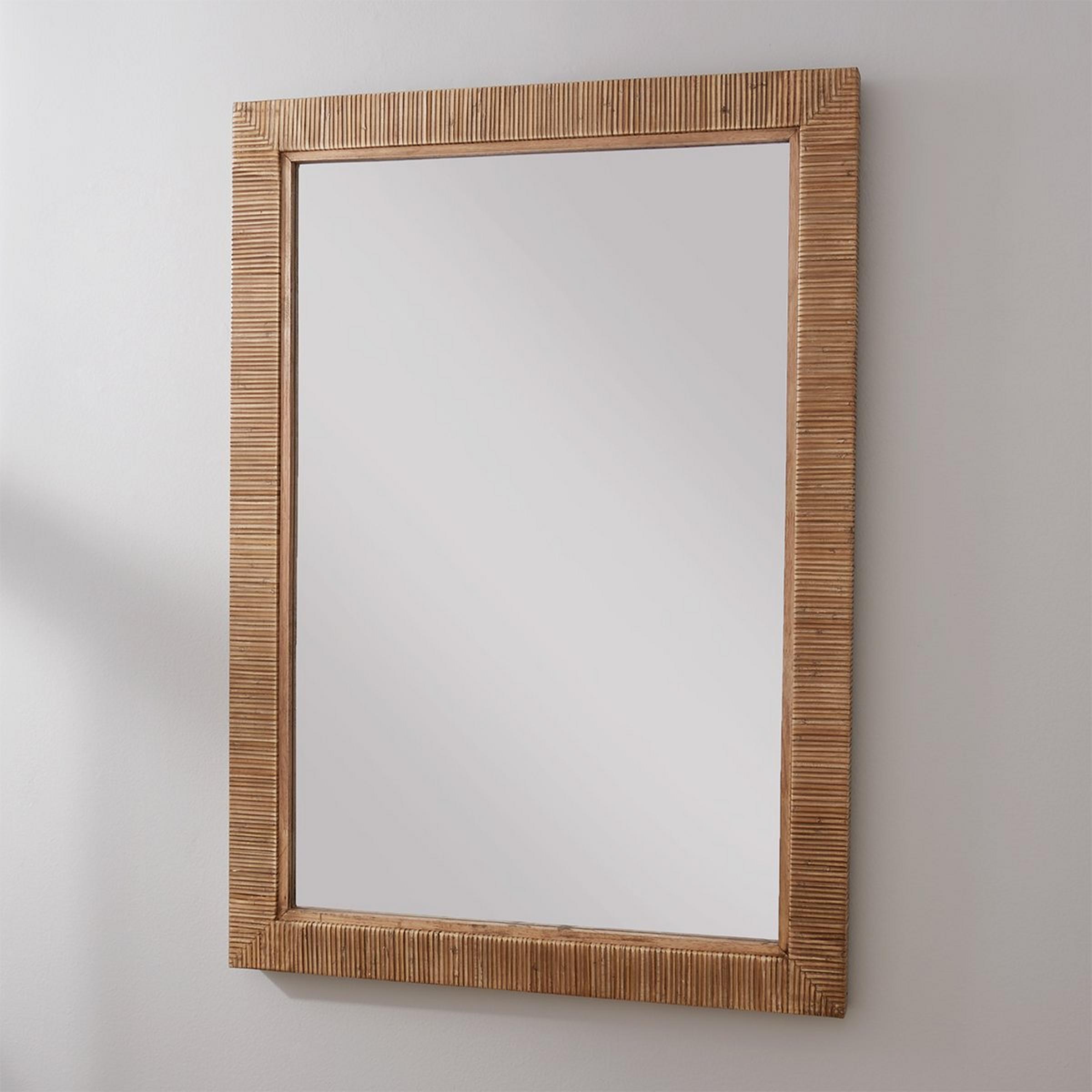 Natural materials of light oak and rattan come together to create the frame of our Brayden Mirror. Its themes of casual coastal and transitional combine form a neutral accent that can float from your living room to the dining room.