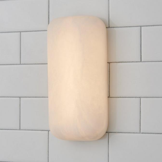 Our Brecia LED Bath Sconce is a stunning piece that combines soft curves and timeless materials. The beauty of the alabaster diffuser is magnified when illuminated, yet it retains an organic allure when unlit. One of the unique qualities of alabaster is the natural variations in veining and tone, which are to be expected and celebrated as they give each light a distinctive charm.