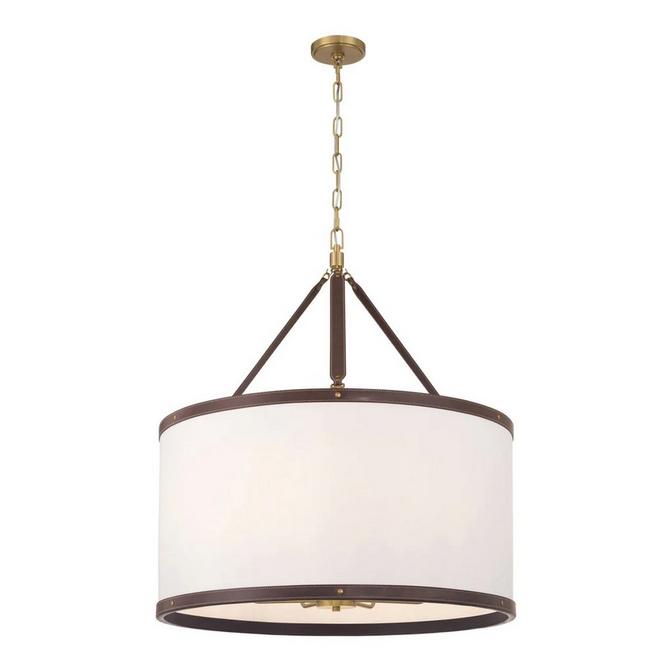 The Brenora Chandelier features exquisite details that elevate this design without adding needless complexity. The classic drum shade is suspended by a combination of chains and vegan leather straps, evoking a tethered feel. It will feel right at home above a kitchen island or front entryway, yet it is versatile enough to suit a moody study as well, surrounded by décor such as leather bound books. Within the shade, a cluster of candelabra bulbs offers an enticing visual detail gleaned upon closer inspection.
