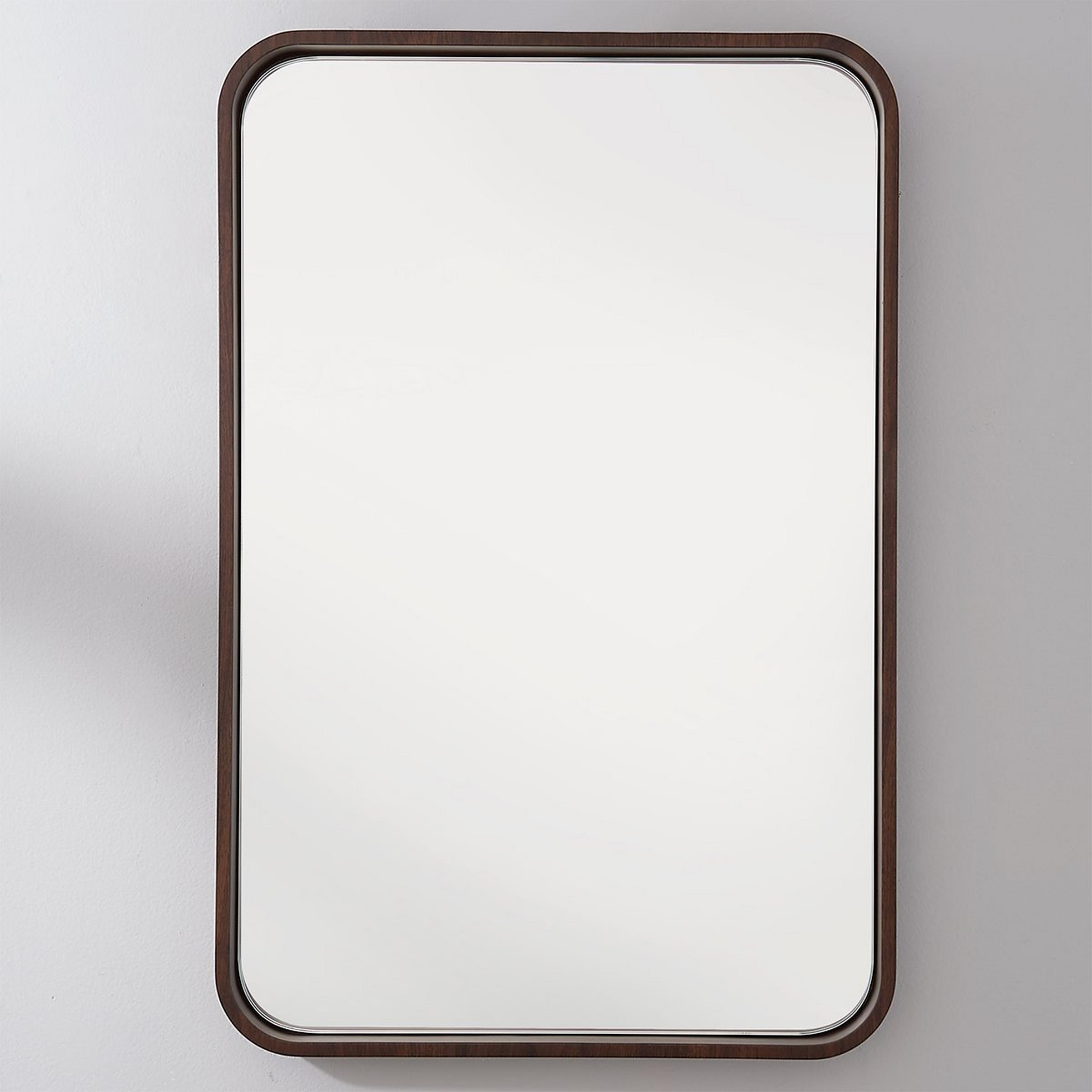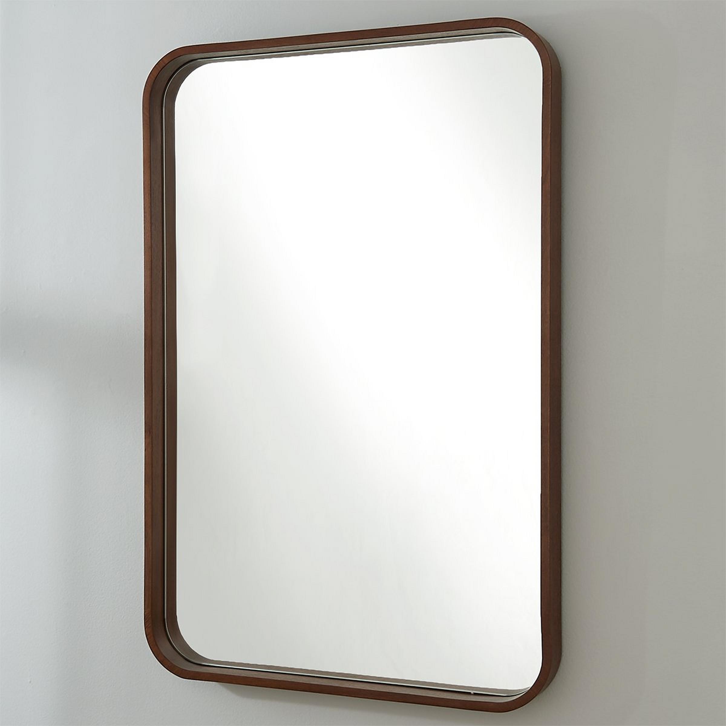 Simple yet strong, our Brooks Mirror's main feature is the striking yet subtle walnut frame that curves around the corners. For a soft accent in a lodge setting, this wall decoration can complement your bedroom or bathroom.