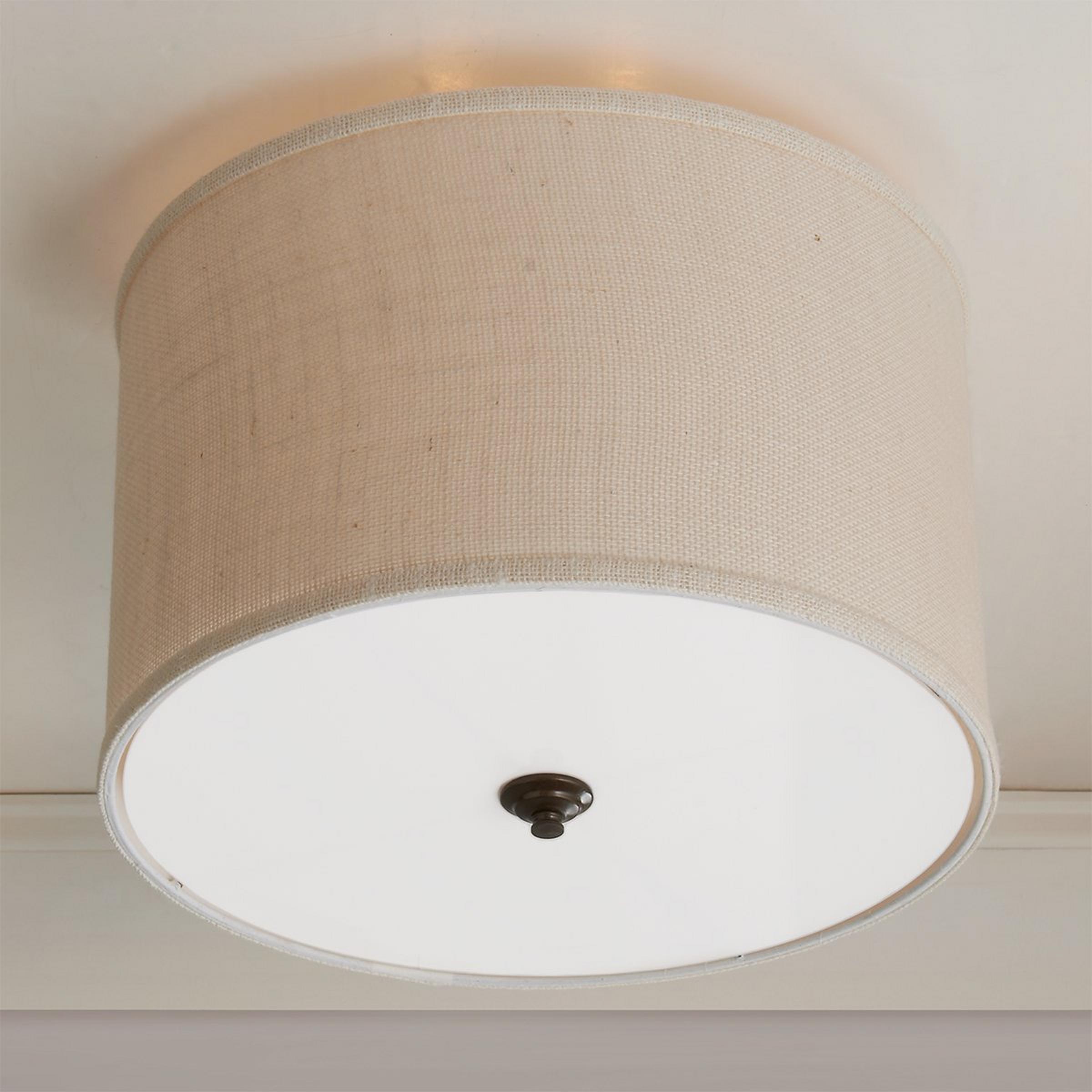 This Burlap Drum Shade brings a lovely natural texture to your home with the light coming out of the bottom of the fixture softly diffused with the included acrylic diffuser.