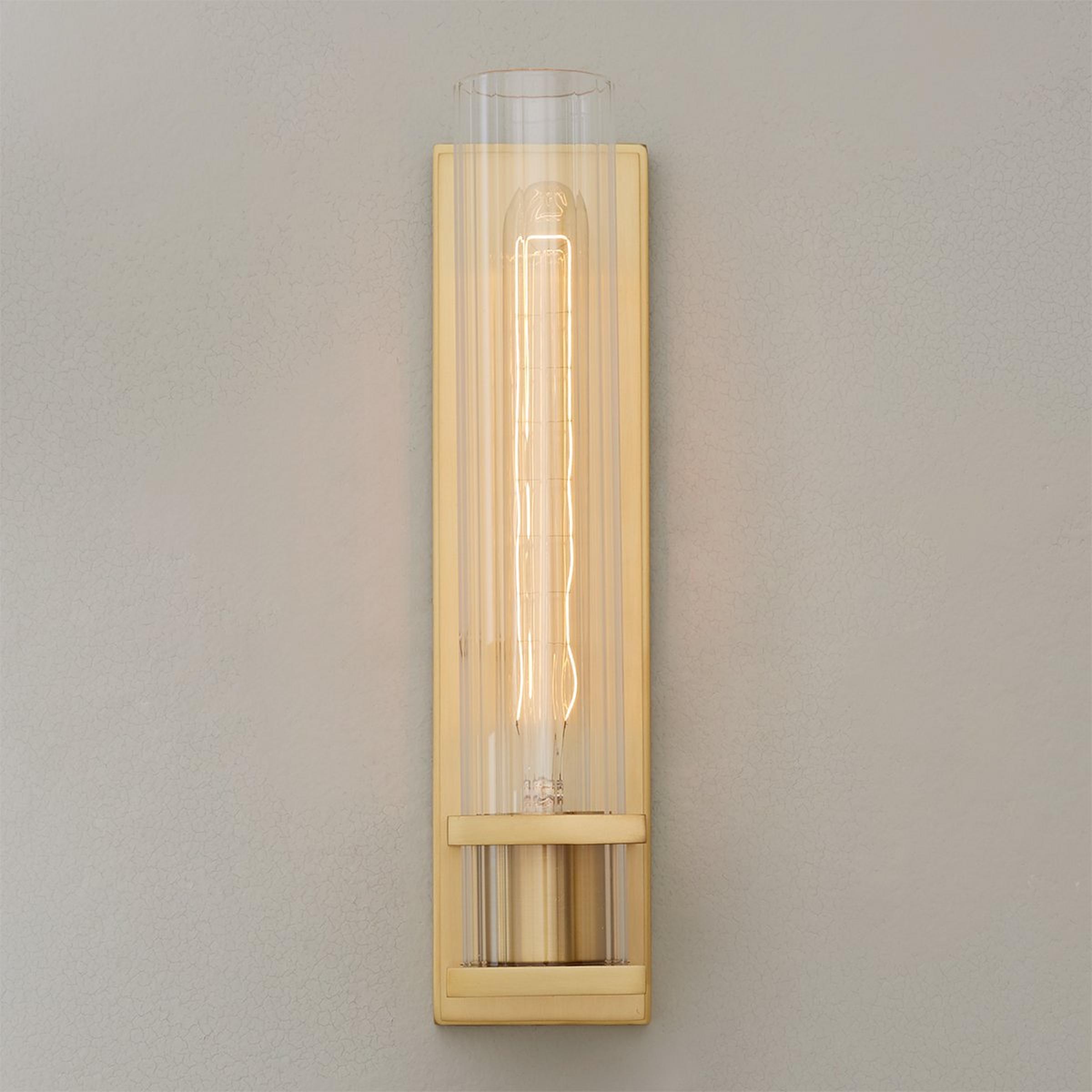 Subtle glam awaits in the fashion of our Cadence Sconce. Its minimalist attitude is excited with its elegant composure. The ribbed glass shade and angled hardware come complete with a versatile style and the ability to float between a bathroom setting or down your stairwell.