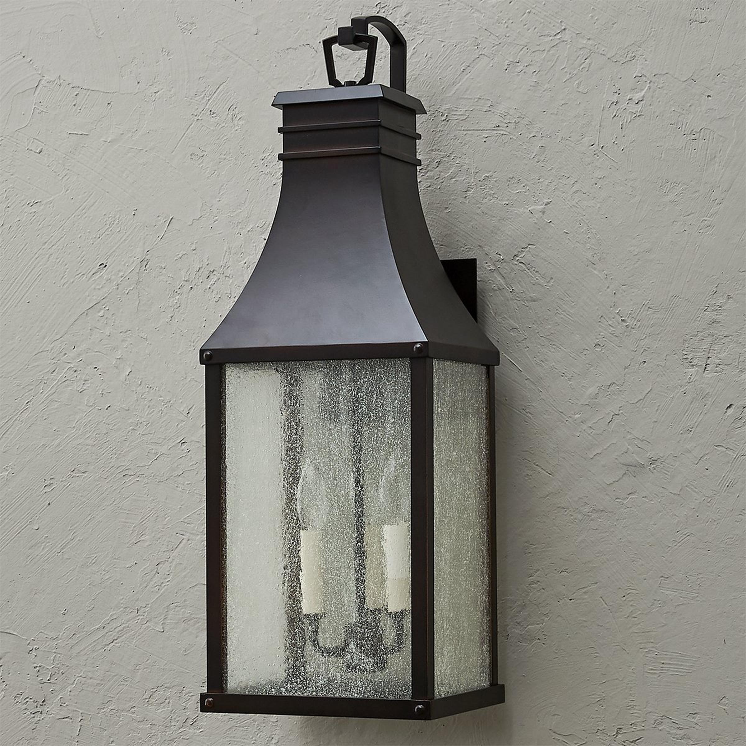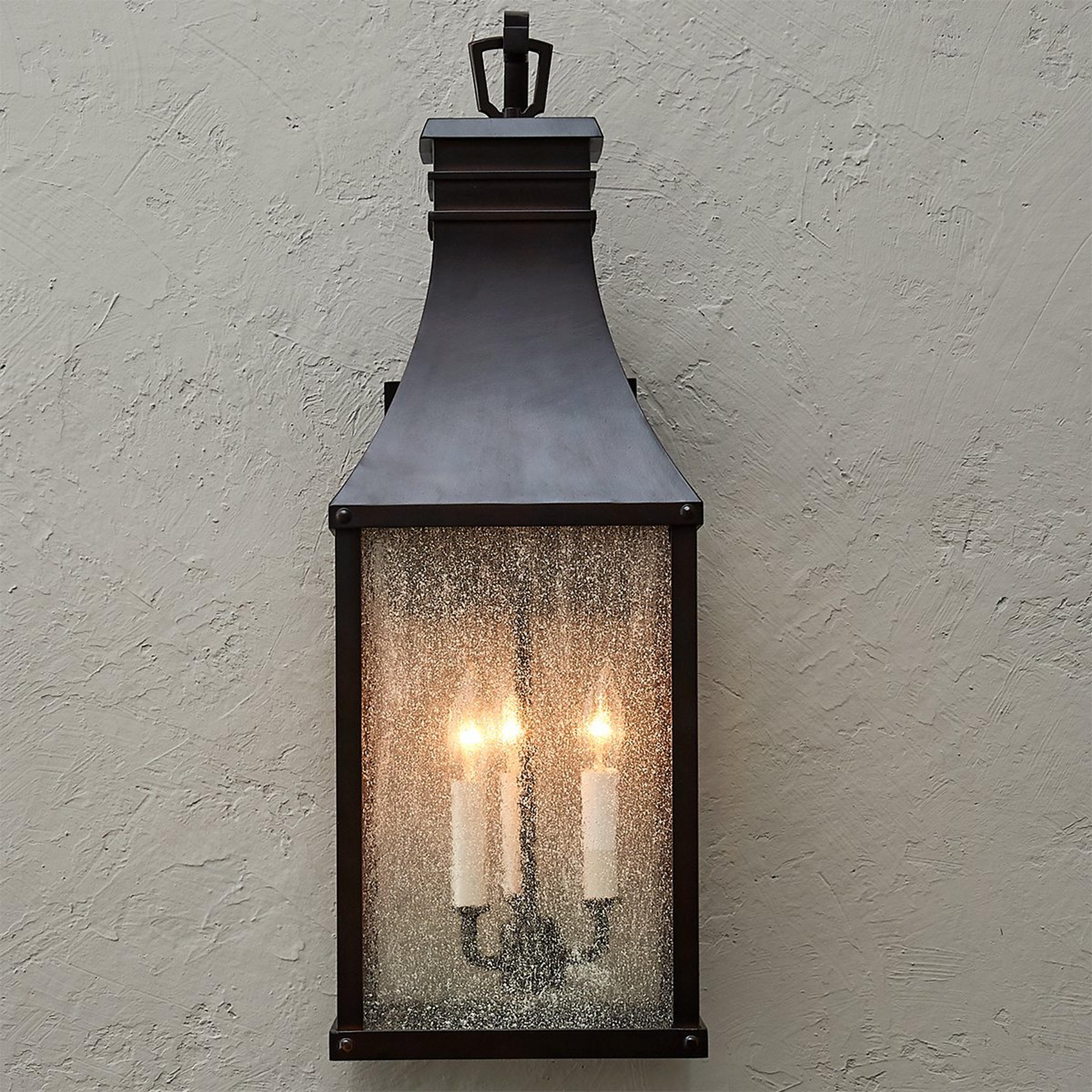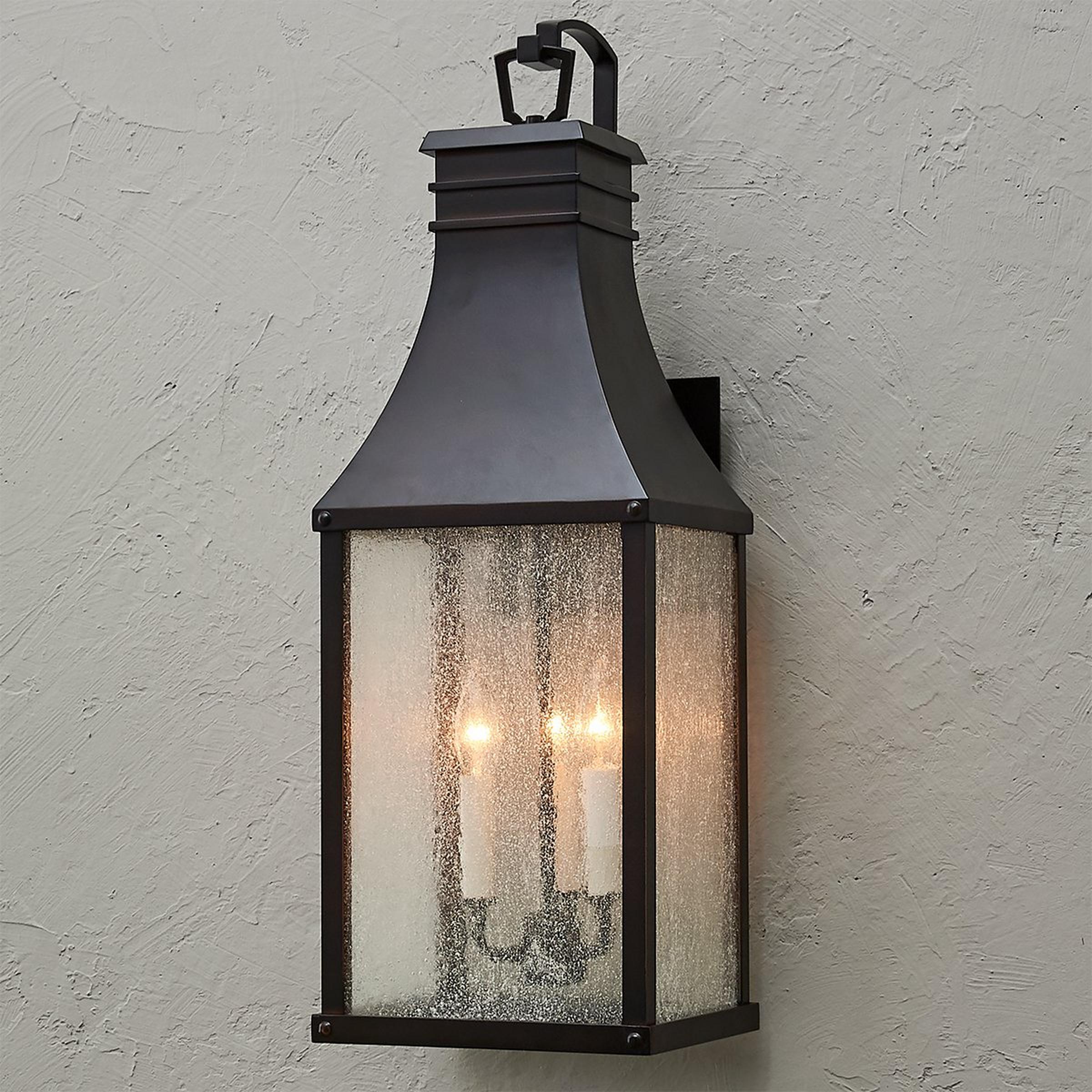 The Canterbury collection harnesses inspiration from old English design, featuring a traditional aesthetic that has prevailed through time. The seeded glass panes and antiqued finish harmonizes with your traditional aesthetic, illuminating your exterior with grace.