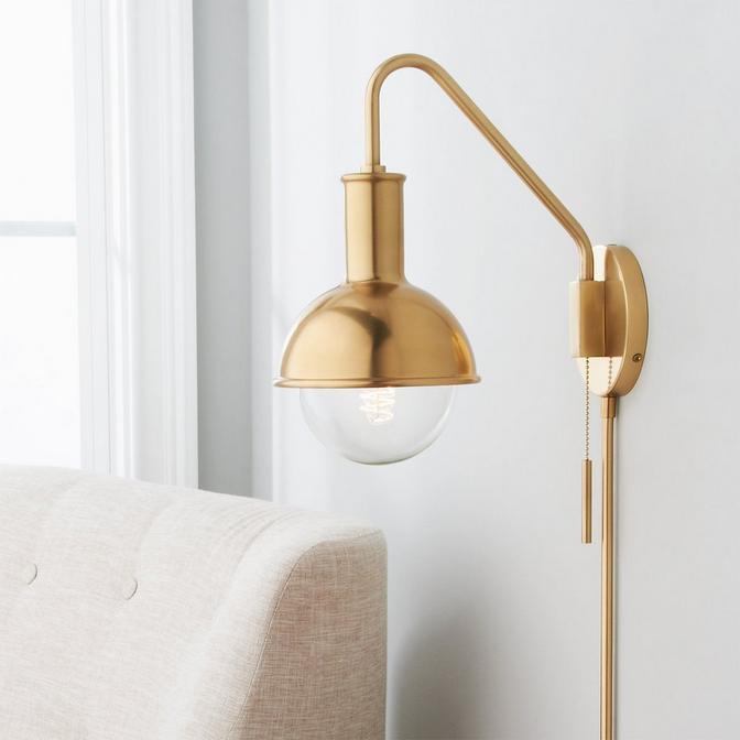 The Capped Globe Swing Arm Sconce is full of personality plus it's functional. The globe is a 60 watt G40 vintage style light bulb that screws into the metal cap shade. The arm swings from left to right for flexible lighting where you need it. A pull chain on the backplate adds retro charm while the cord and plug allow you to install this fixture just about anywhere! 12.75" rod extends down from the backplate with 78" of black cloth cord.