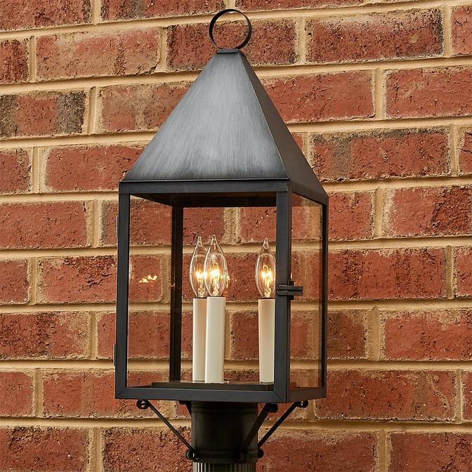 Handmade to order in our Richmond, Virginia production facility, this classic design is a versatile accent piece that can work with any exterior style. Copper and brass are living metals that will change and patina over time, the color and speed of which varies based on environmental factors. Made to order. Please note: Fixtures accumulating salt in coastal environments must be rinsed regularly to prevent corrosion. Items listed with Clear Coat are finished with a protective clear coating that may help to slow the natural patina of the copper or brass. This can be helpful in preserving the current look of the product, or as a protection against harsh environments.