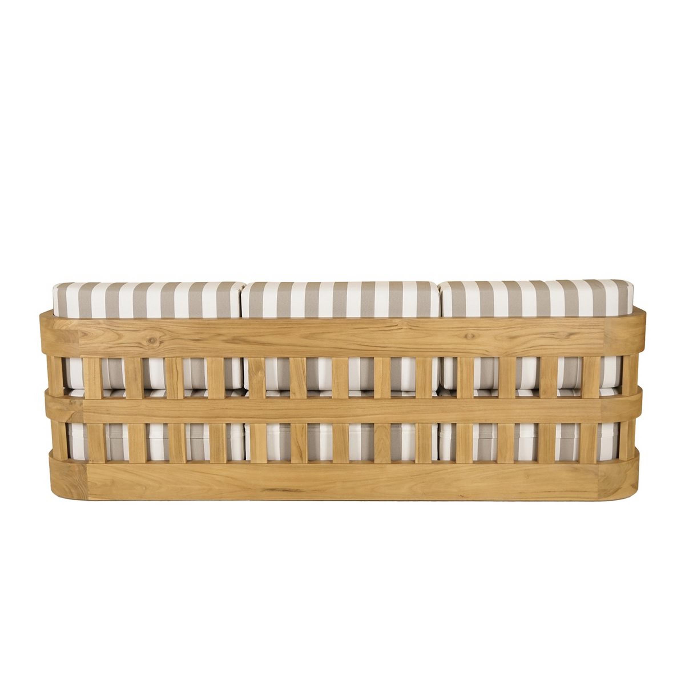The striped pattern on Capelin's cushions incorporates classical nautical motifs while maintaining a versatile appearance with its bold wooden frame. With its simple accent pillow, this sofa feels supportive and inviting. The perfect statement piece to set the tone for your outdoor space, this couch strikes a balance between sophistication and comfort.
