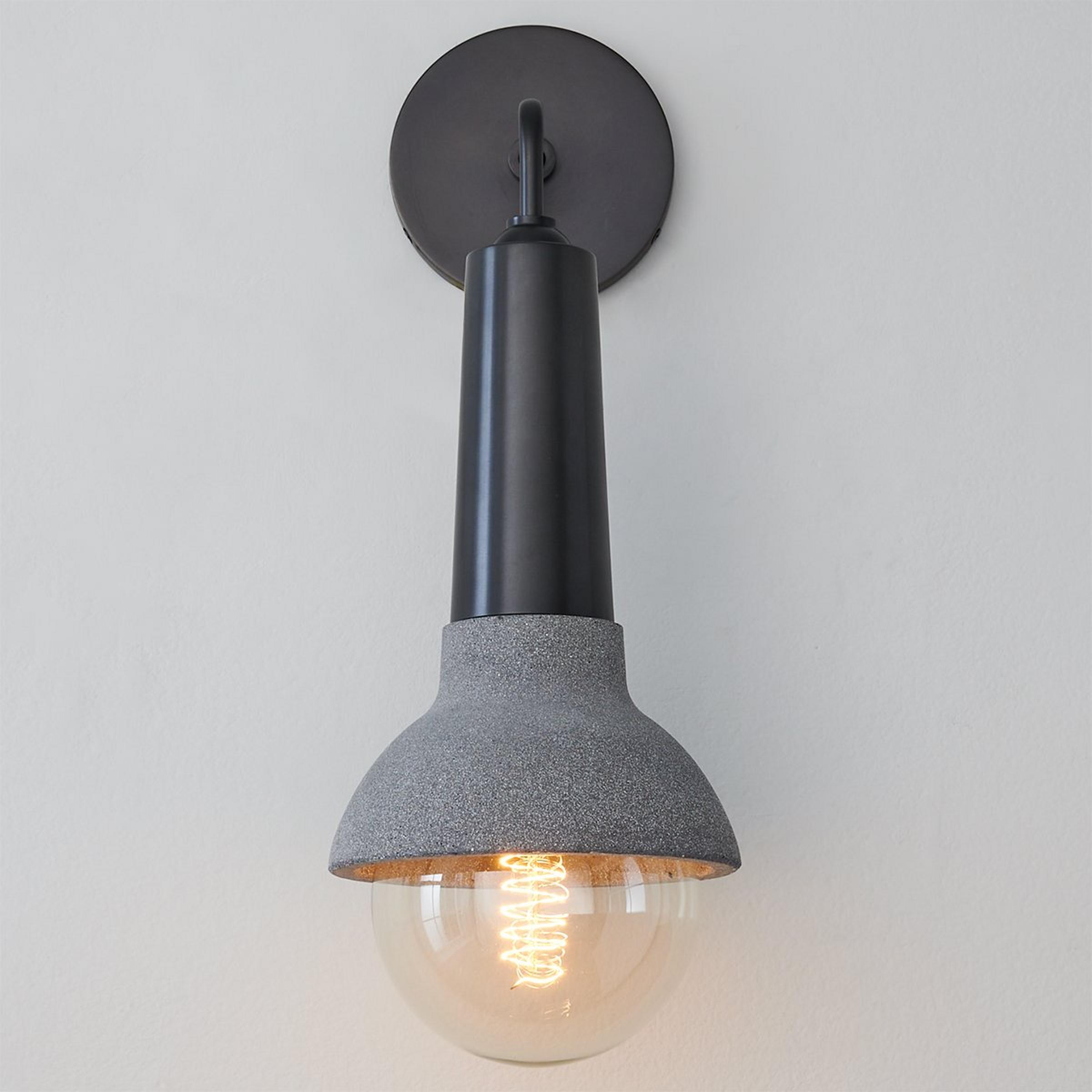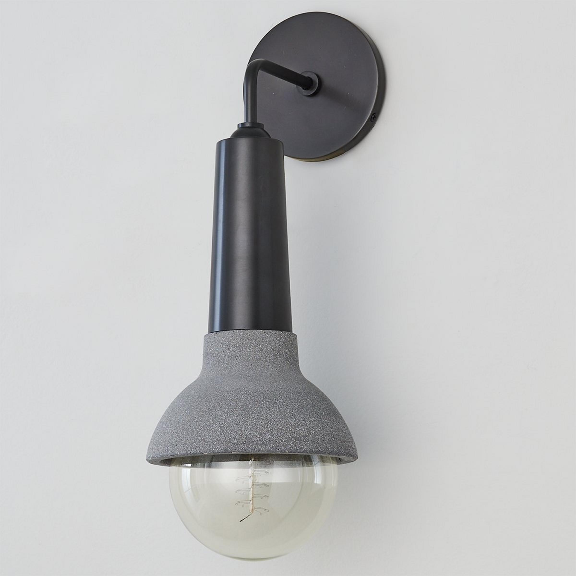 Urban artistry is conveyed through the Capped Concrete Sconce with an industrial and modern vibe coming together to create a work of art for your wall. The textured shade flows seamlessly into the metallic hardware for a contrast of colors. Whether in your hallway, living room or bedroom, this fixture will be a stylish focal point.