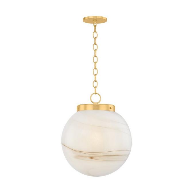 Swirling umber disrupts this pendant's stunning opal glass shade for a creamy marble look that is modern and warm. The simple silhouette is made visually interesting by its distinct chain and works well to accent a space alone or is delightful in pairs. An ideal choice for unifying a room's color palette, this midcentury-inspired pendant harmonizes with various decor styles!