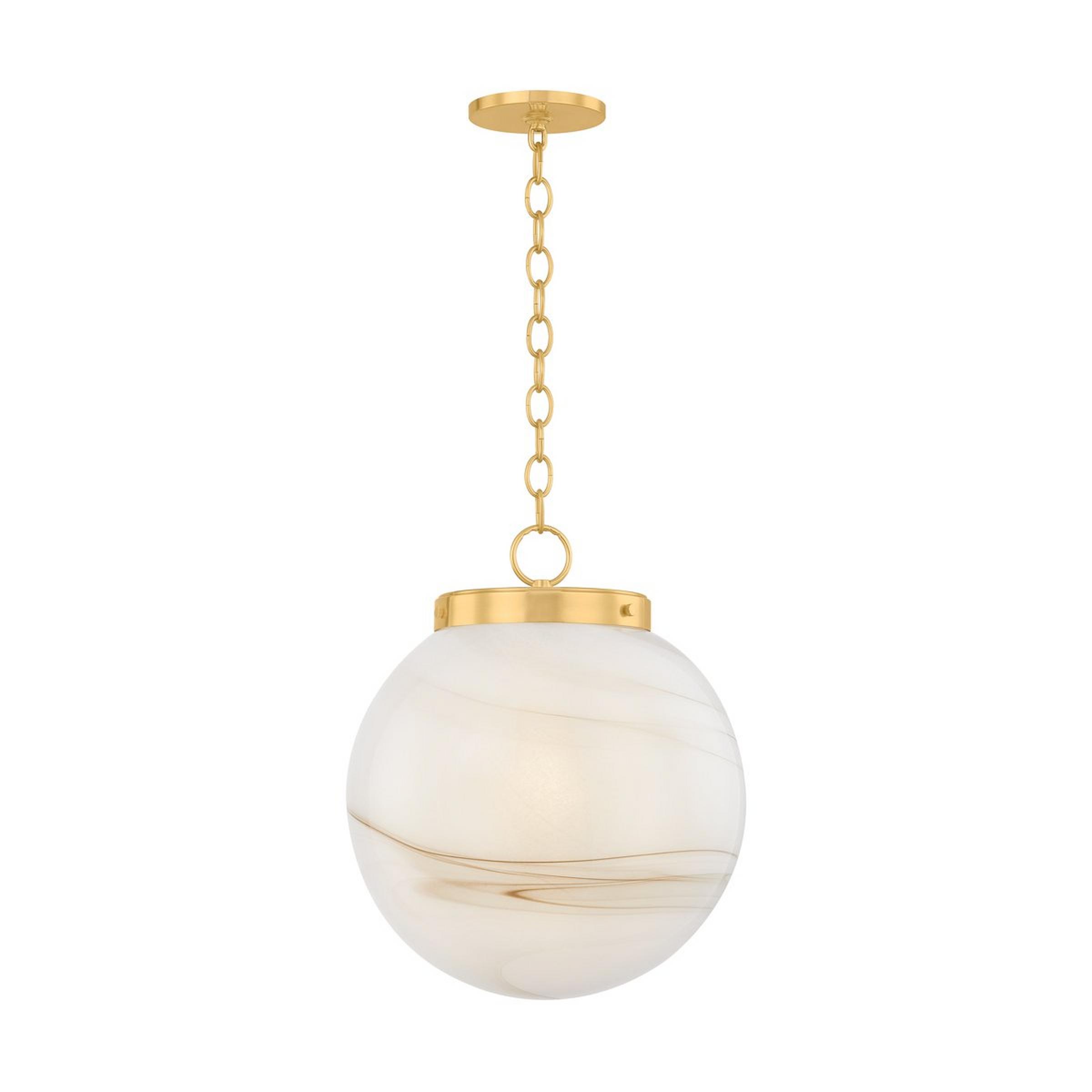 Swirling umber disrupts this pendant's stunning opal glass shade for a creamy marble look that is modern and warm. The simple silhouette is made visually interesting by its distinct chain and works well to accent a space alone or is delightful in pairs. An ideal choice for unifying a room's color palette, this midcentury-inspired pendant harmonizes with various decor styles!