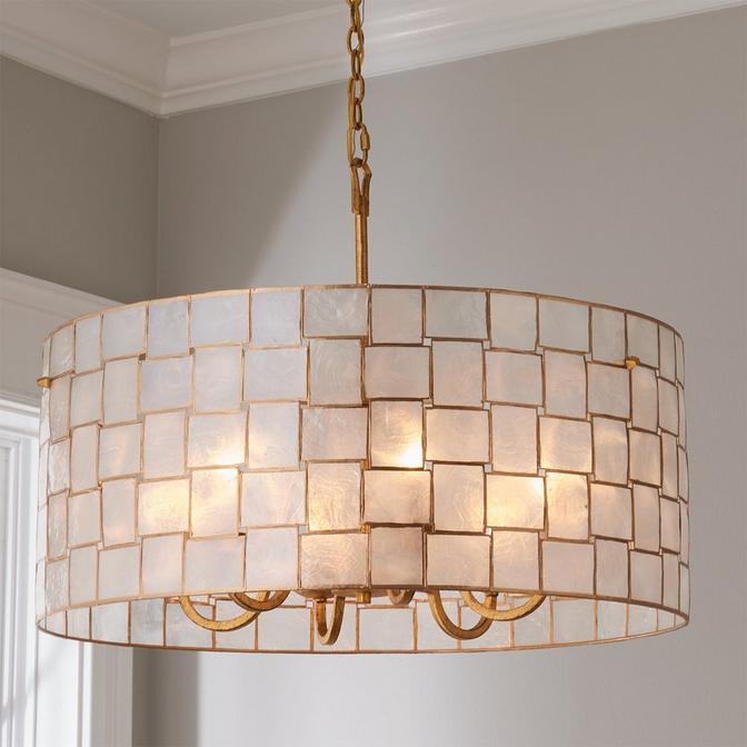 Displaying sophisticated style with excellent craftsmanship, this beautiful collection of natural shell light fixtures in a gold leaf finish will captivate you while illuminating your space.
