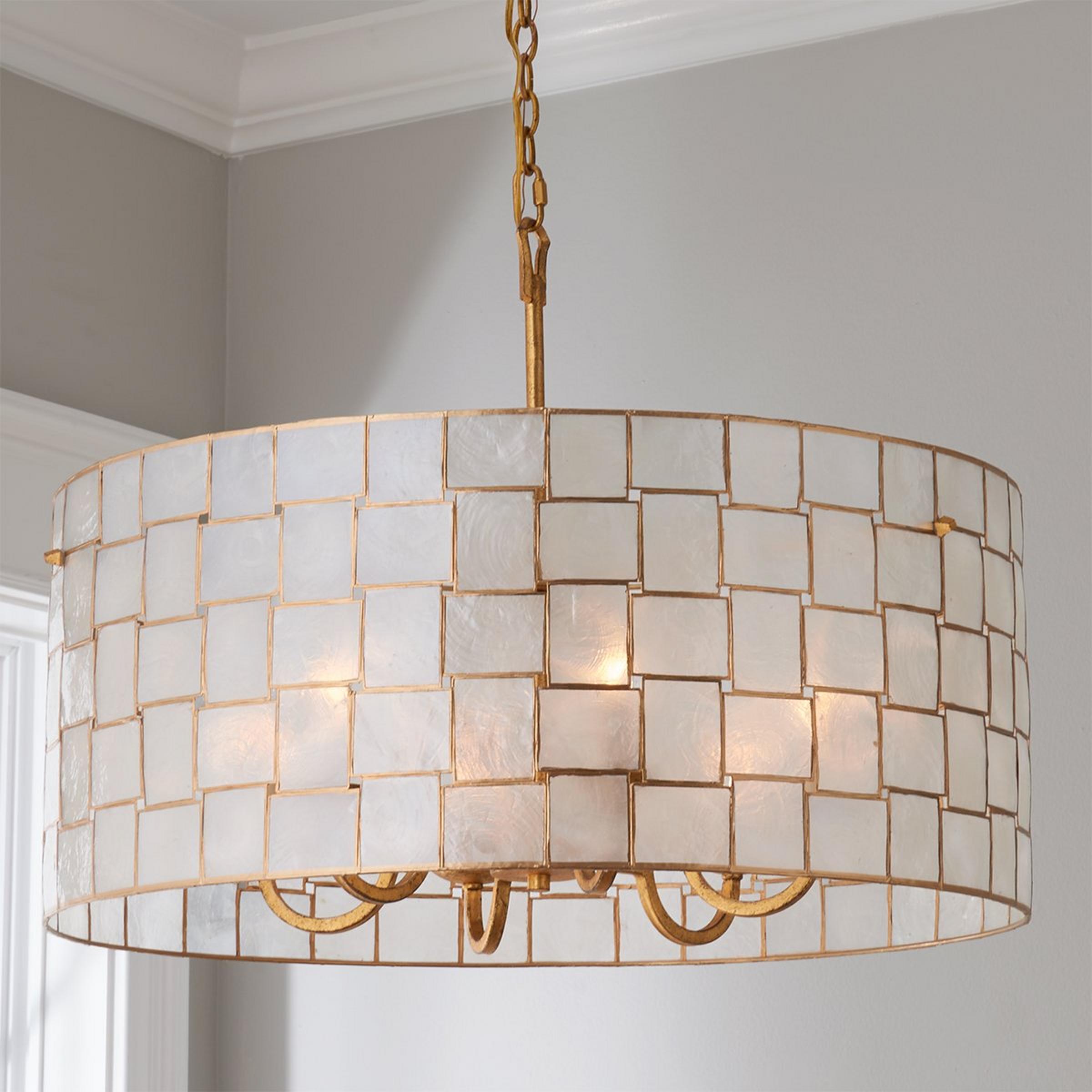 Displaying sophisticated style with excellent craftsmanship, this beautiful collection of natural shell light fixtures in a gold leaf finish will captivate you while illuminating your space.