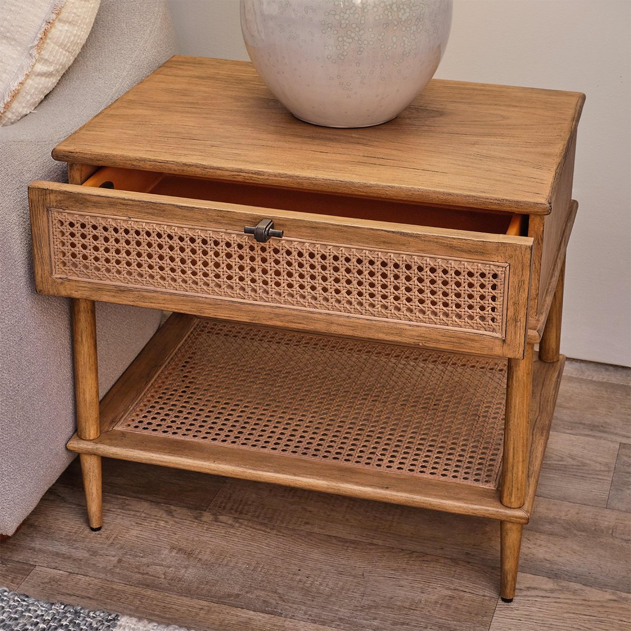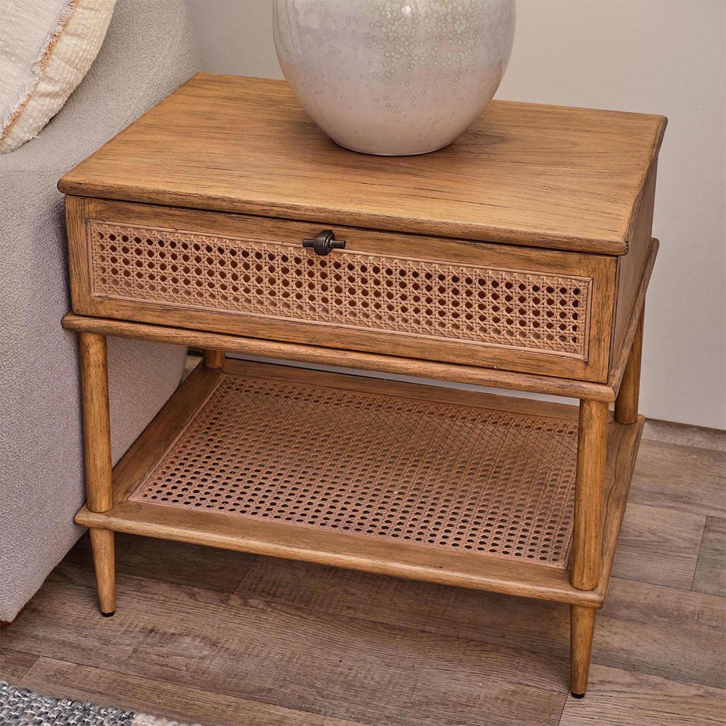Timeless and fresh, Carroll takes inspiration from enduring vintage styles, adding a familiar touch to your modern or transitional space. Glowing with natural appeal, this table features mindi wood construction with rattan accents for a classic mid-century look. Please note that because this product is made from natural wood, no two pieces are alike. Color and finish will vary.