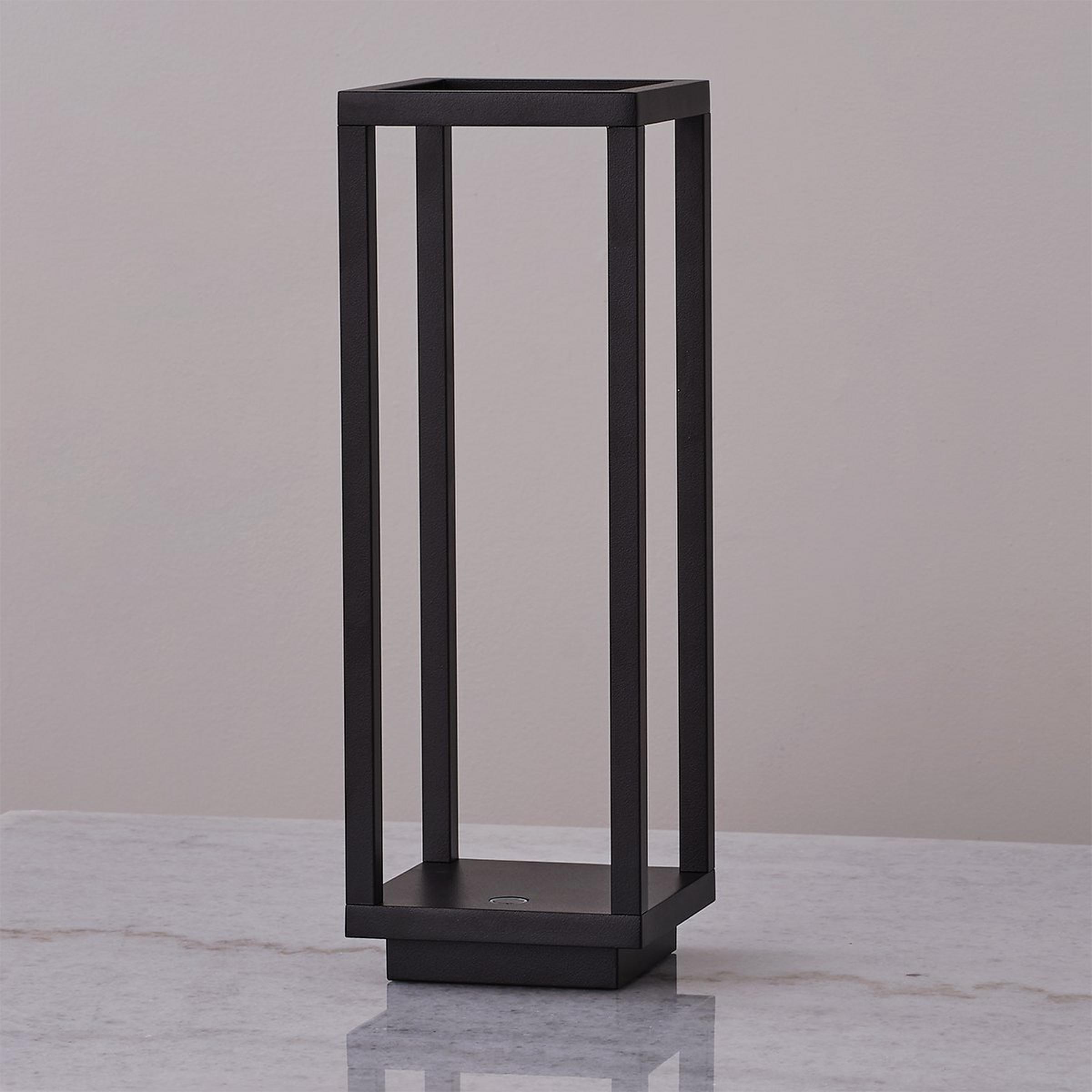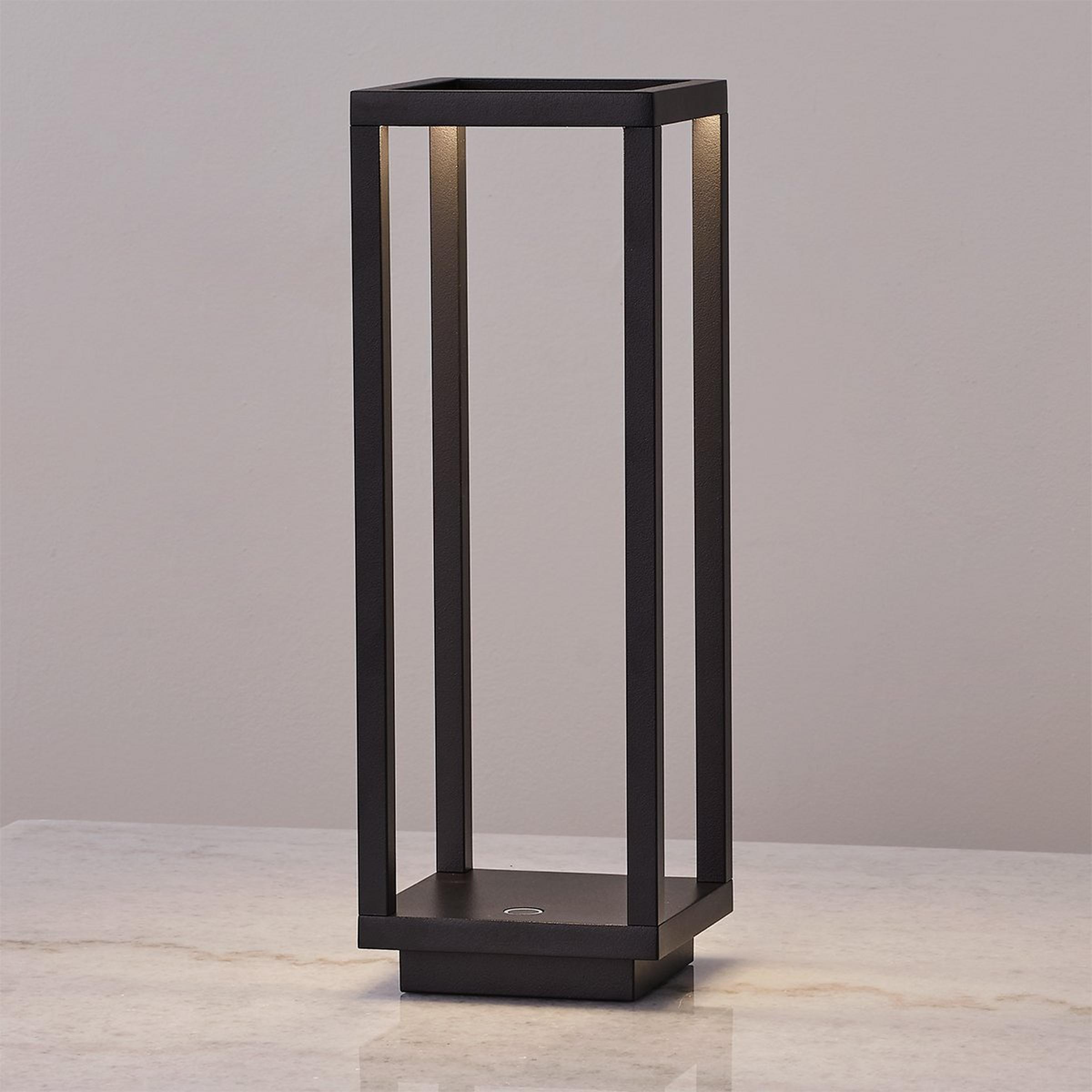 Sleek lines and geometric shapes grant this fixture its distinctive look, perfect for any modern space. Its cordless design makes it an ultra-convenient choice, equipped with a USB charger and touch-dimming functionality for use indoors or out.