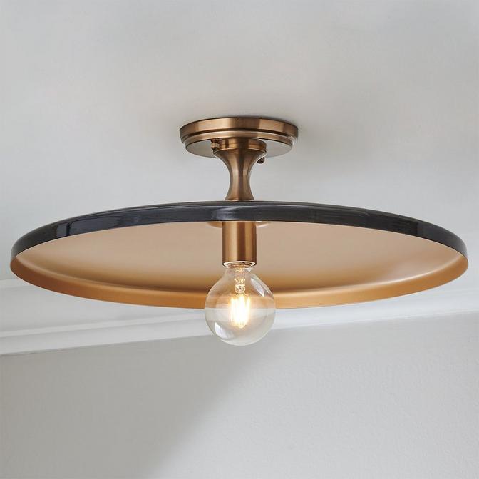 Bold yet versatile, classic yet new, trendy yet timeless: the Chris Loves Julia lighting collection embodies everything we love about home design duo Chris and Julia Marcum's distinctive modern traditional style. This exclusive collaboration between Chris Loves Julia and Shades of Light features traditional designs updated with Julia's fresh, inspired style in a range of signature colors and classic materials hand-selected to elevate the drama in any room. The sharp, edgy simplicity of the Victor Line is grounded in classic minimalist inspirations. Available in a range of signature gloss colors, the oversized disc shade evokes a modern verve cleverly complemented by lustrous historic brass hardware. Striking and unexpected, Victor's playful air will make any room feel both cozy and sophisticated.