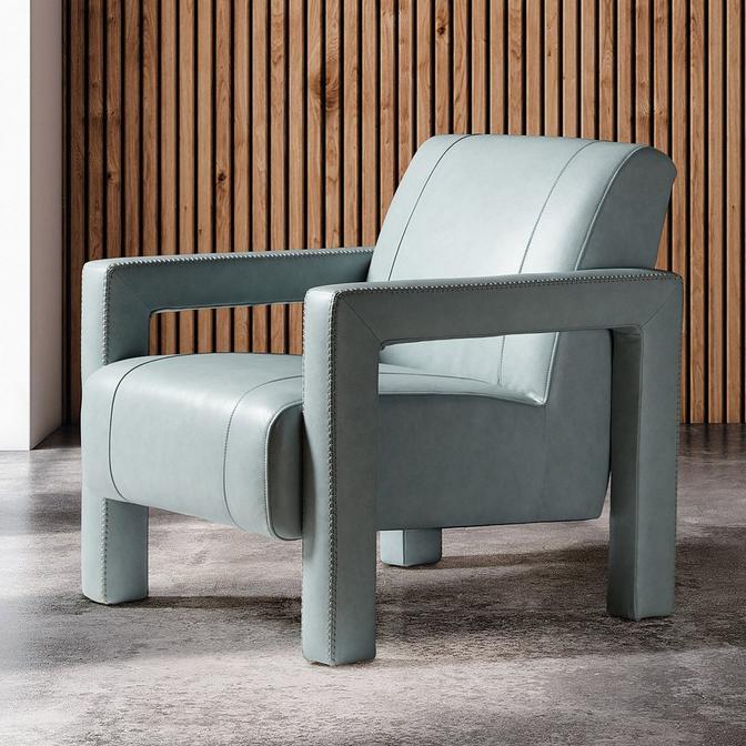This stylish accent chair borrows the visual language of twentieth century modern design through the open framework of legs that hold up the comfortable seat. Upholstered with semi-aniline top-grain leather, each component of the design has been carefully curated, from the broad strokes of the silhouette to the fine details of the seams. At the edges of the legs, visible stitchwork adds texture to the piece while also celebrating the materiality of the leather. Place a pair of these across from a magnificent sofa to create a comfy spot for socializing, or placing one next to a minimalistic space-saving floor lamp to create a cozy reading nook.