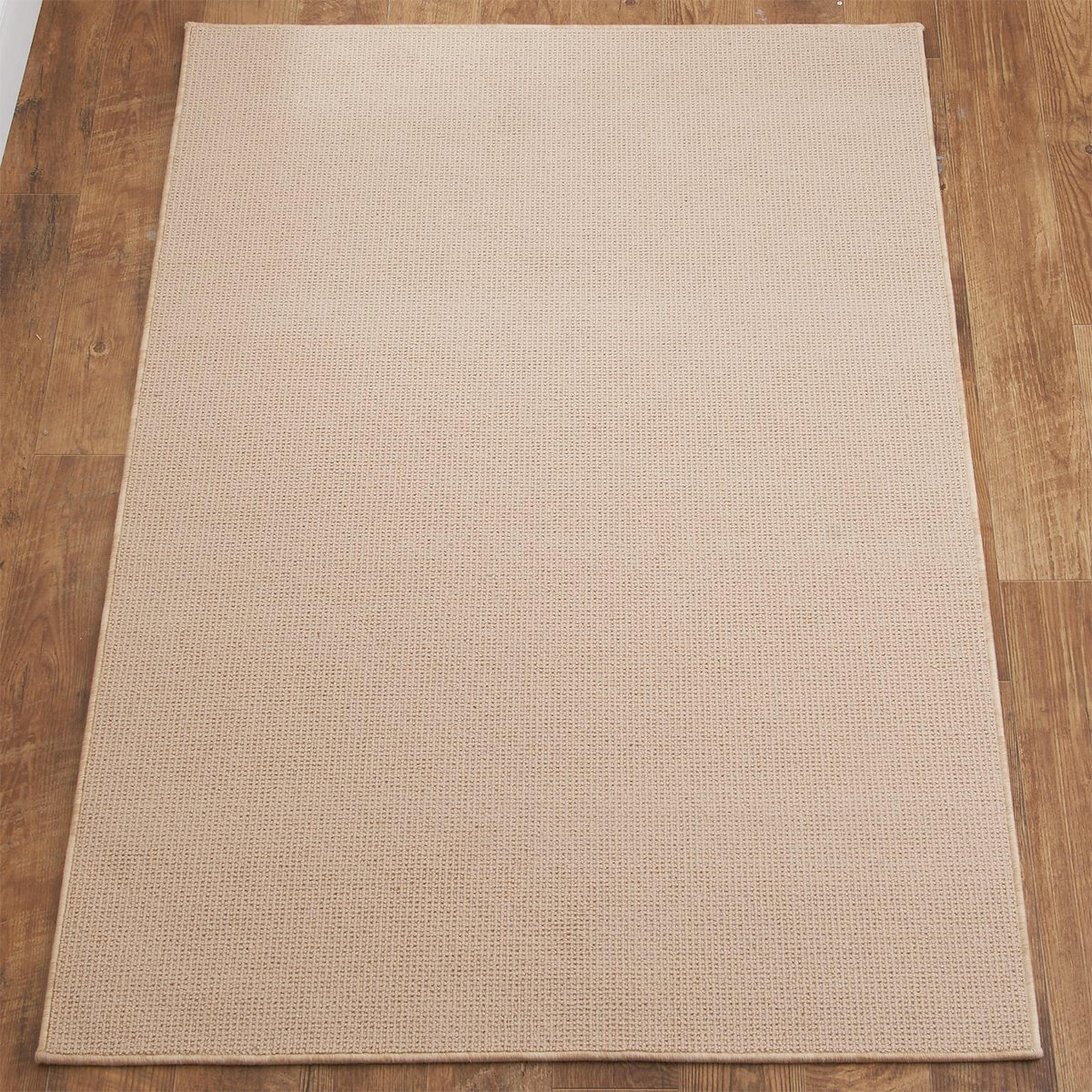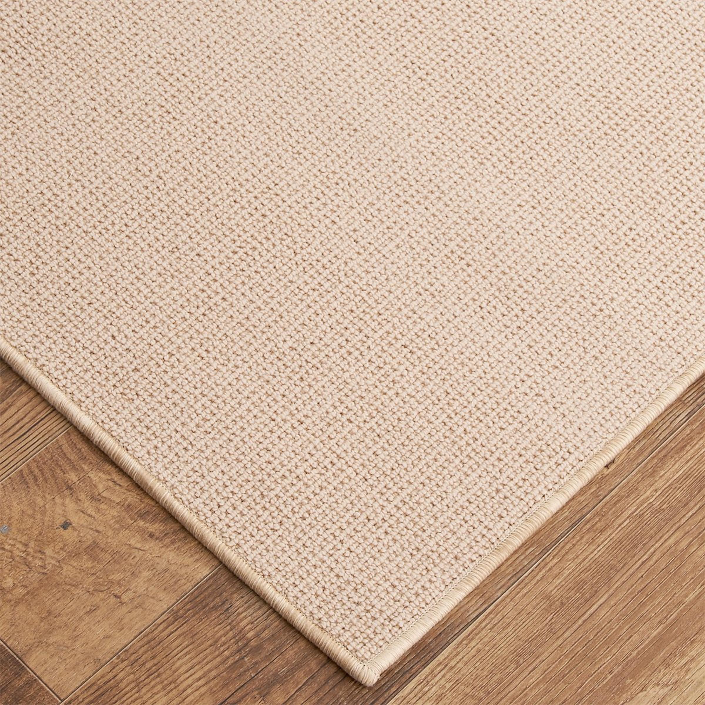 Simplistic and environmentally responsible natural woven wool rug. Natural variations in weave and shading make this rug distinctive and unique. Choose from eight available color options: Beige, Brown, Chocolate, Dark Grey, Light Greige, Natural, Tan or Cream. This rug features a serged edge and attached non-skid backing to hold your rug in place on any surface.