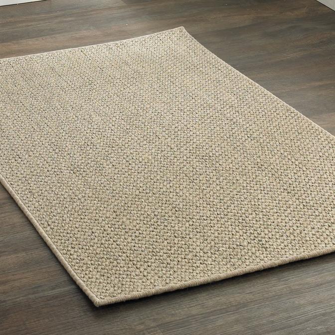 Simplistic and environmentally responsible natural woven sisal rug. Natural variations in weave and shading make this rug distinctive and unique. This rug features a serged edge and an attached non-skid latex backing.