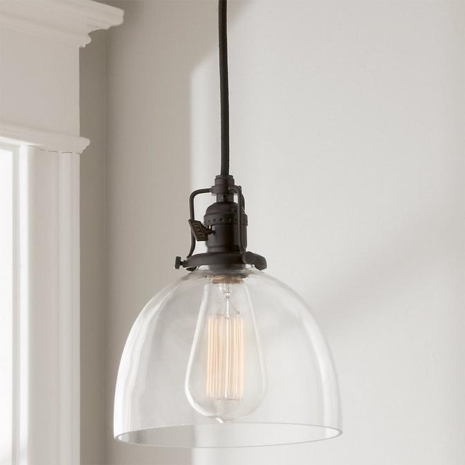 Clean and sleek with an industrial edge, this pendant features a smooth and thick clear glass dome shade beneath industrial inspired hardware. Also features an on/off switch on socket for complete control of lighting. Add our "Vintage Edison Bulb" for added vintage appeal.