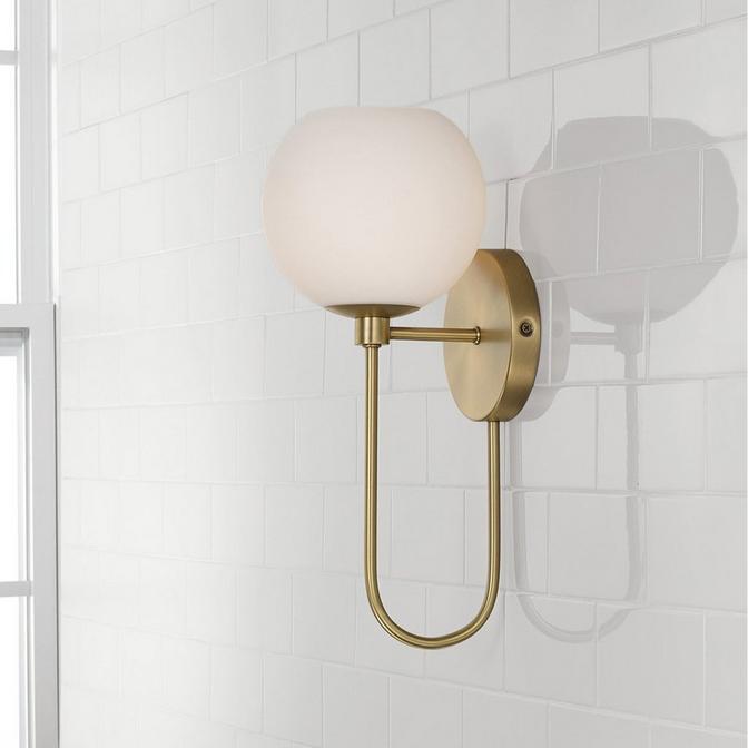 Cute and bubbly, this fixture directs light through a circular opening at the end of its semi-opaque shade to highlight the beauty of a bathroom vanity or to accentuate a dynamic living room. The globe glows gently as light spills outward making the room easy on the eyes as an added bonus.