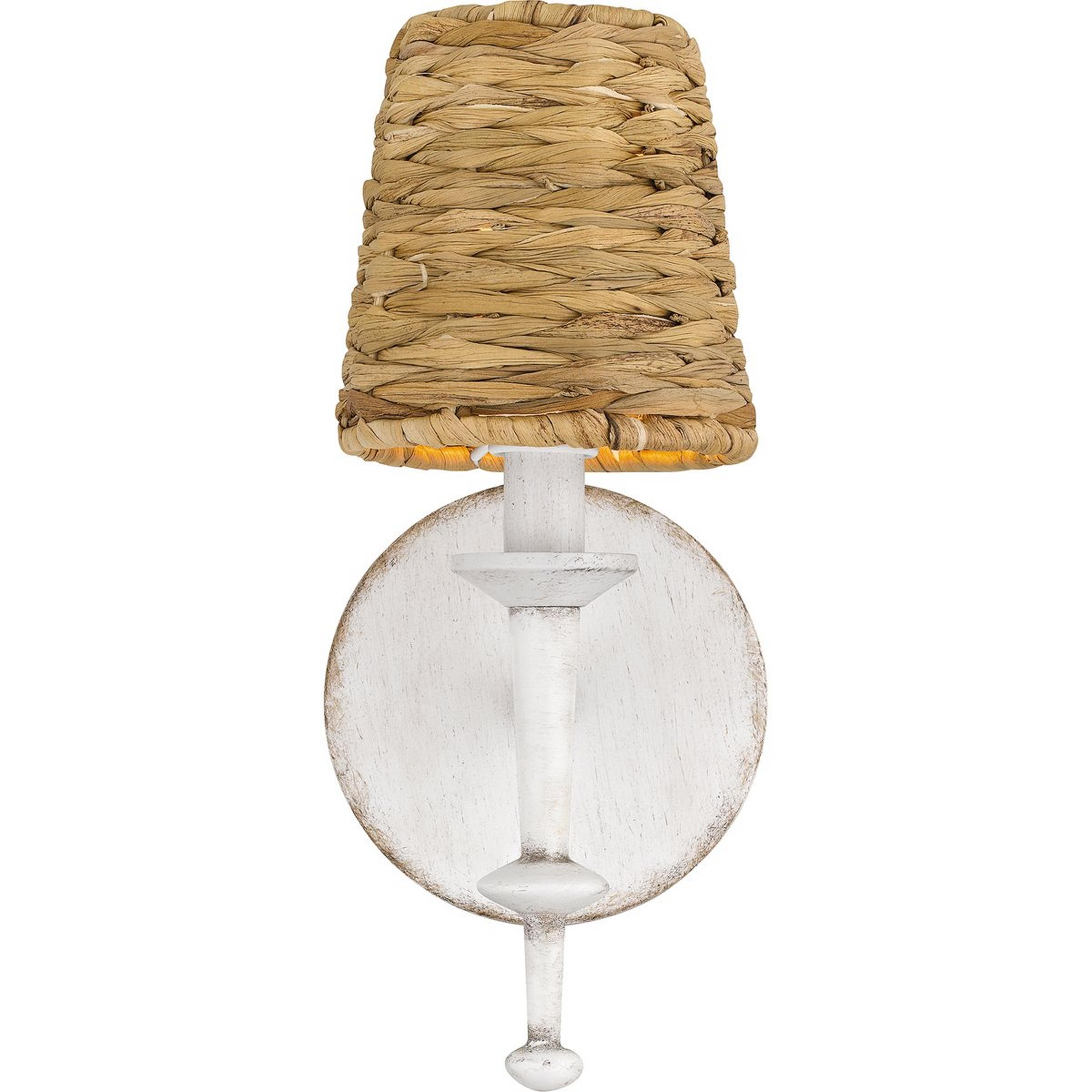 Colton is a modern antique, drawing from vintage inspiration to create a charming sconce. Its distressed finish and seagrass shades evoke a rustic appeal, ideal for farmhouse or coastal styles. This light adds a unique textural touch as it warms your space with light. The perfect addition to tie together a quaint kitchen theme or create a cozy breakfast nook!