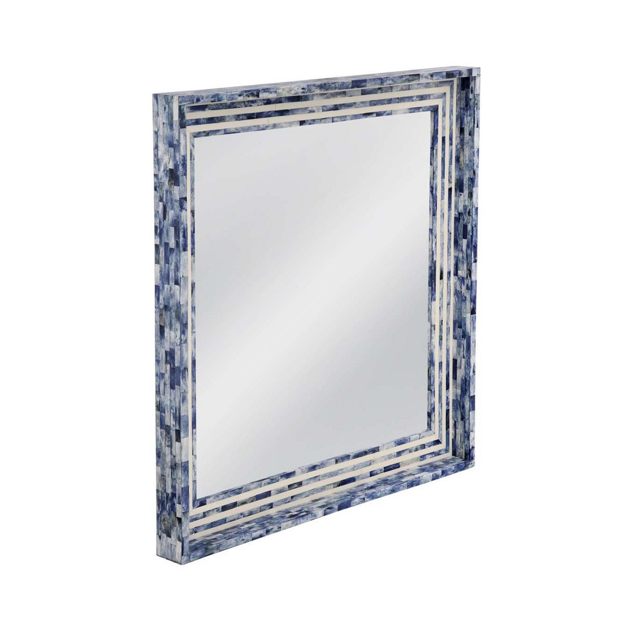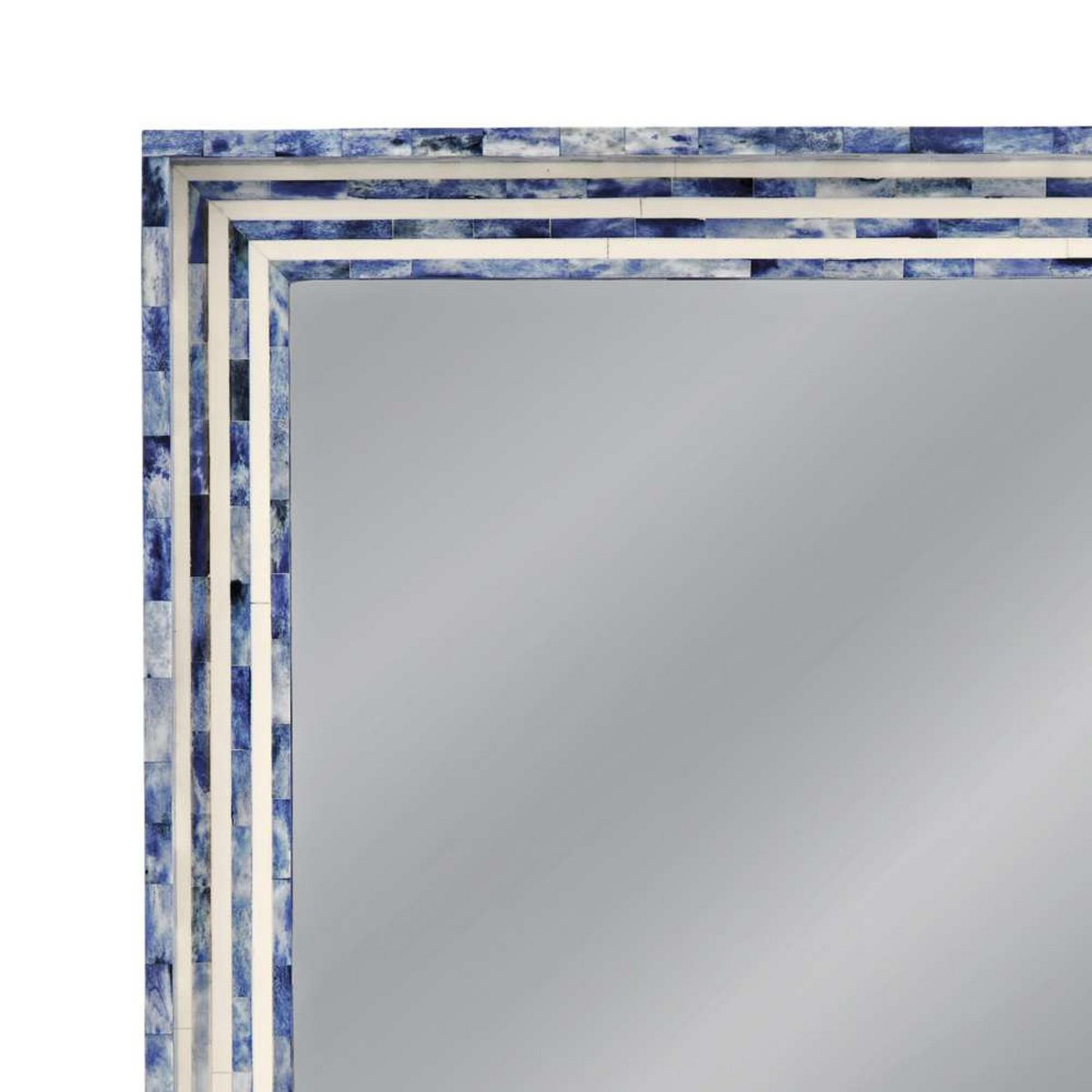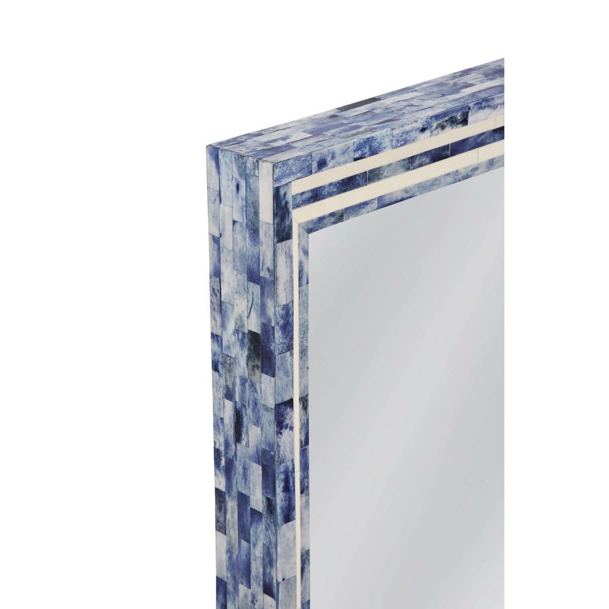 The Colvin Mirror adds a whimsical, artistic feel to any space. Not only does the frame resemble architecture detailing, it also features a mosaic-inspired frame crafted from alternating colors of bone. Three stripes run around the border, forming a geometric pattern that can be used to create a visual motif around the rest of the room. The outer edge of the frame extends forward, creating a sense of depth to add further dimension. These elements combine to form a mirror that exudes sturdiness, formality, and elegance.