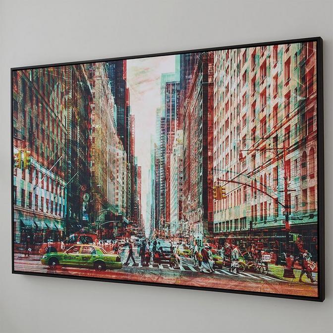 Elevate your space with our vibrant modern photo artwork of a bustling city street framed by towering skyscrapers. The dynamic colors and funky filter infuse energy into the scene, inviting you to experience the rhythm of urban life. Elegantly framed, it adds contemporary flair to any room, sparking conversation and inspiring imagination with the essence of modern city living.