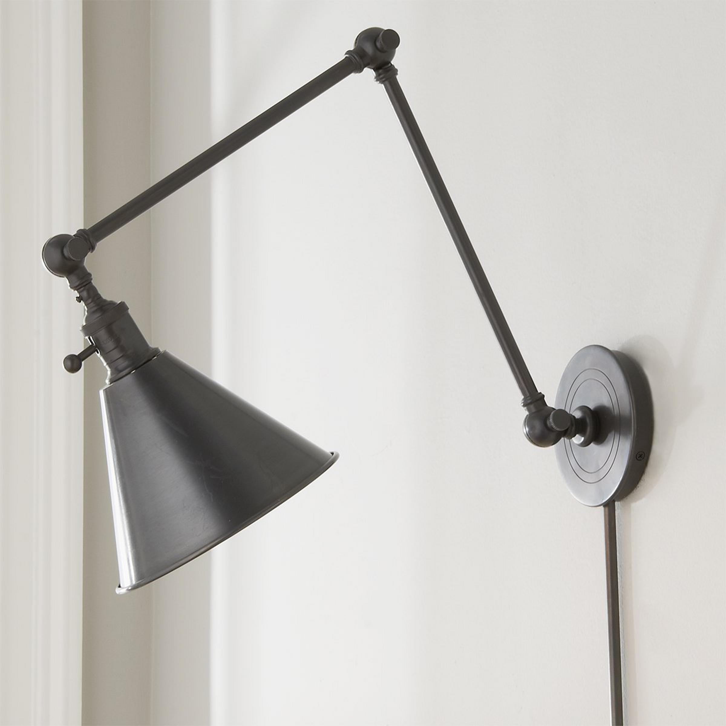 Whether used by the bed, over the sink, or above bookcases, this highest-quality cone shade wall lamp will direct the light just where you want it. Locking pivot, double-jointed arm, and full 36" extension.