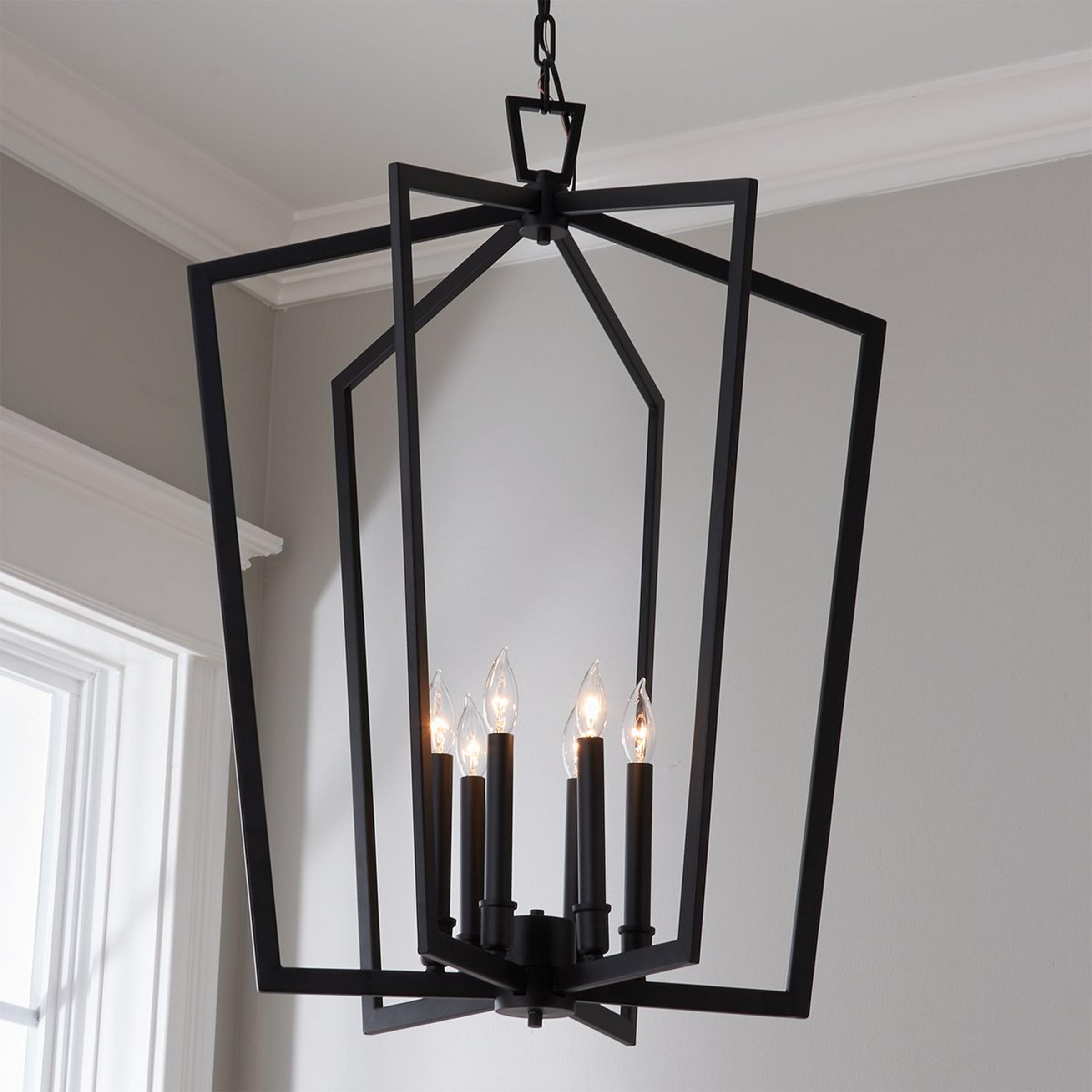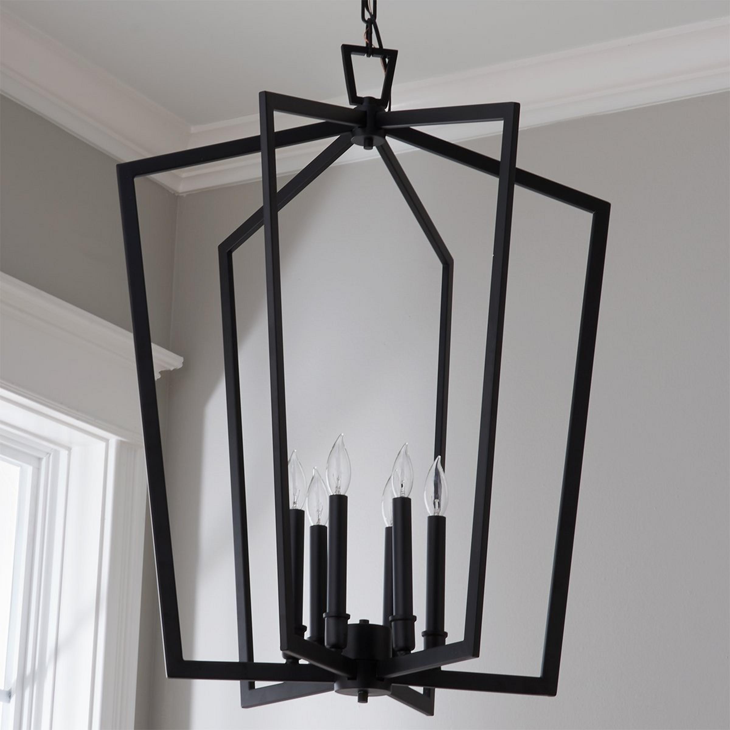 Minimal design meets soft industrial structure in the Conservative Contemporary Lantern. The intersecting pentagons make for a sleek physique to hang over your kitchen counter. In an open cage set up, the inner bulbs shine brightly through to paint your room with ample light.