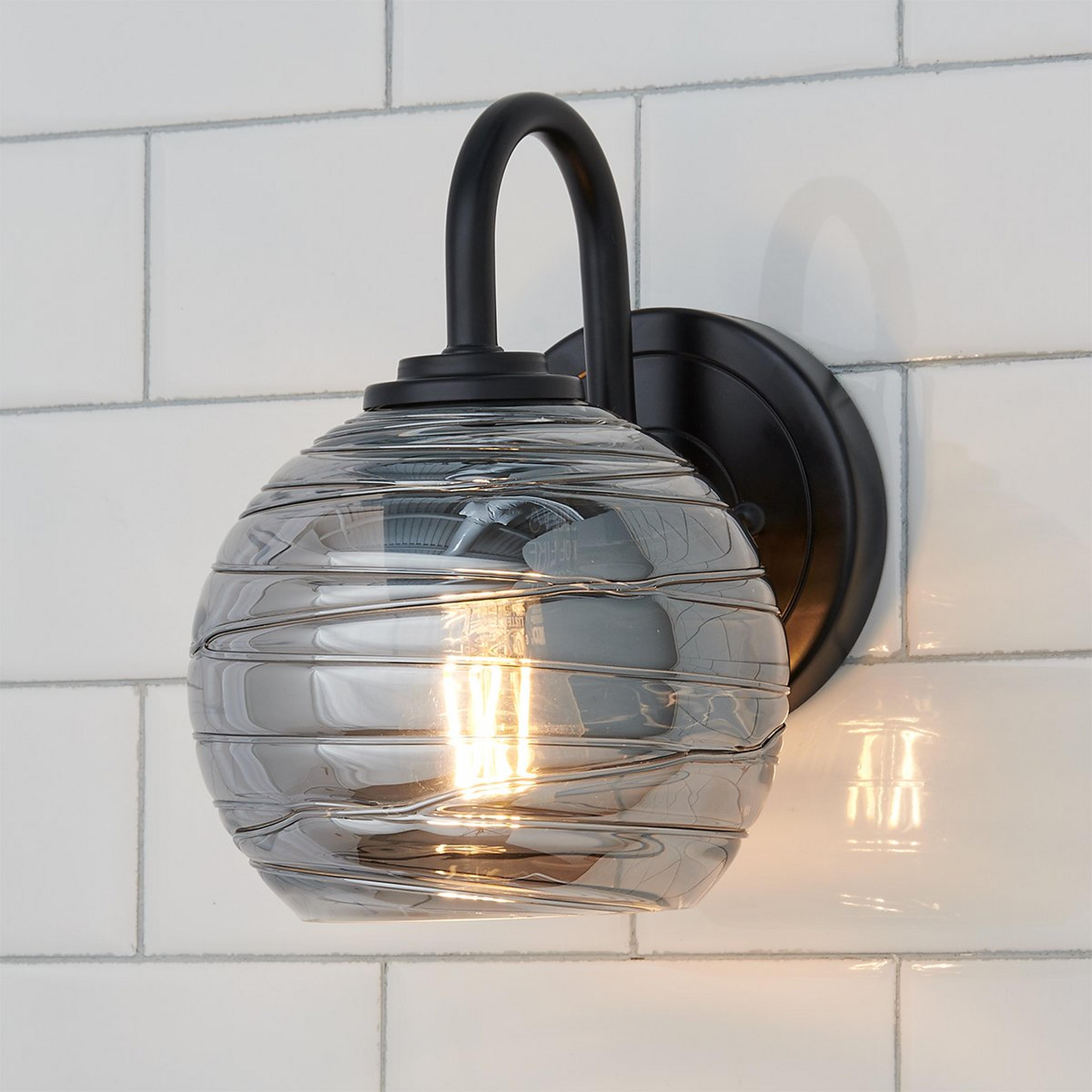 The Danza collection infuses a whimsical spirit into a classic sconce design, showcasing a gracefully undulating arm that dances playfully from the backplate. This imaginative arm cradles a beautifully swirled smoked glass shade, casting a warm, inviting glow that enriches the atmosphere with its distinctive form.