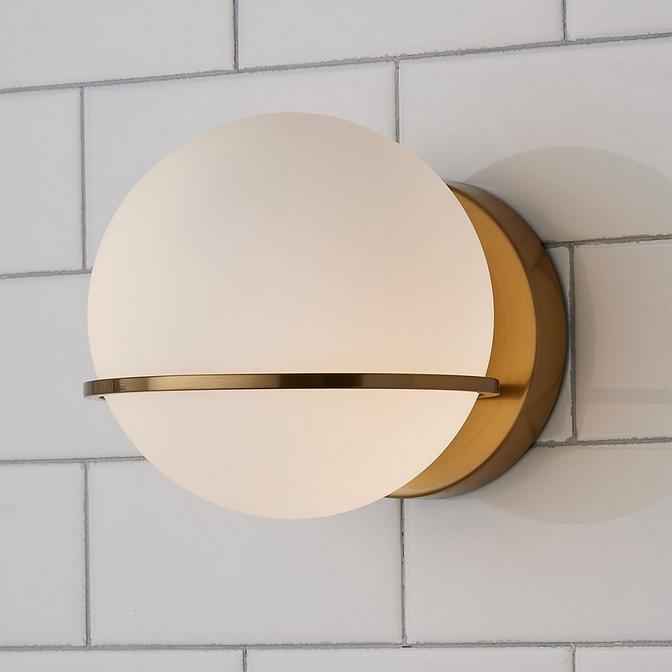 Make a stunning statement in your main bath or powder room with the Dario collection! Add soft light and glamour with an opal glass globe and a sleek metal frame. This light can also be used as sconces in a hallway.