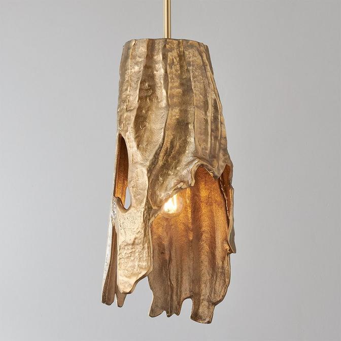 The Daru Pendant is a striking study in organic form and contemporary design. Its sculptural shade, with fluid curves and artful cutouts, evokes the raw beauty of natural textures while casting warm, ambient light. Brushed brass hardware adds a refined metallic accent, creating a harmonious balance between nature-inspired artistry and modern elegance. Perfect for making a bold statement in dining spaces, entryways, or creative interiors. This fixture is assembled by hand in our Richmond, Virginia production facility.
