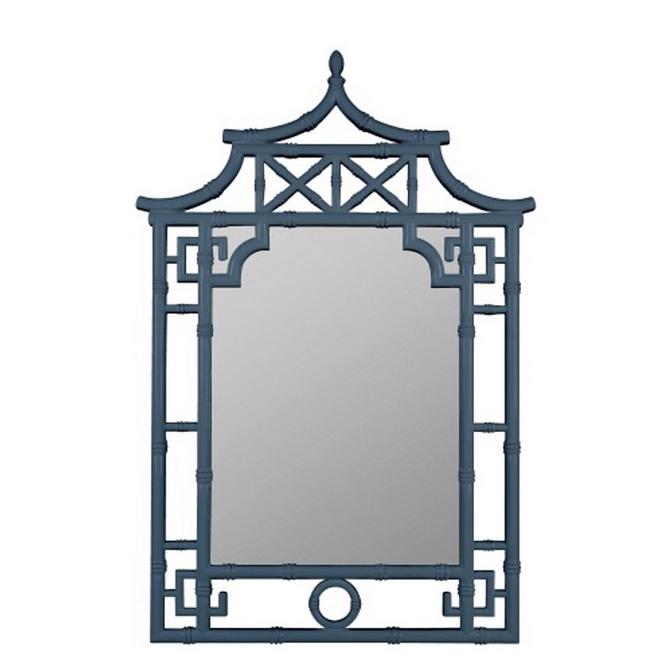 The Dawnwood Mirror features an ornate, open framework that gently intersects the border of the glass to blend each component seamlessly together. Geometric and architectural, the material of the frame is built to resemble bamboo and the stepped roofs of pagodas. Place this in a room filled with sunlight and potted plants to complement the open aesthetic of this mirror. Consider the intricacies of the decorative elements by pairing them alongside ornate molding elsewhere in a room. Wherever installed, this mirror adds charm and warmth.