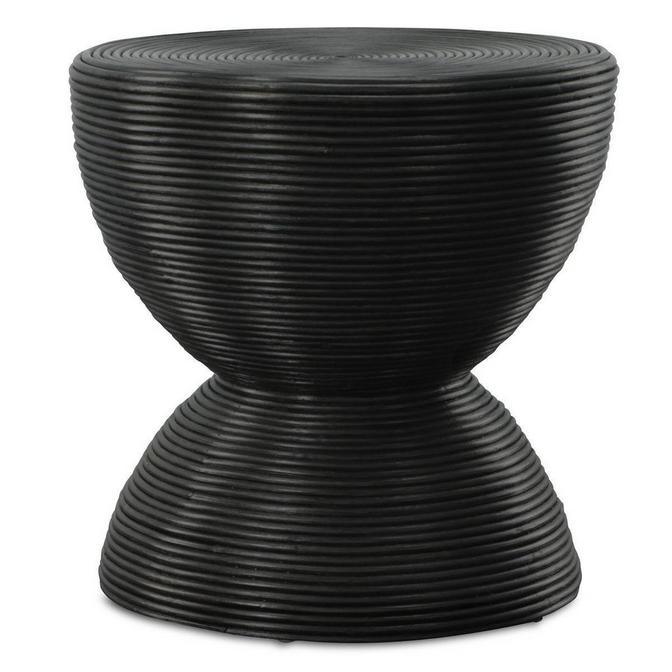 Elevate your space with this striking black hourglass-shaped side table, where form meets function in perfect harmony. Crafted with a bold ribbed texture and concentric circular ridges, the Dhaka side table offers a tactile and visual experience that captivates from every angle. Its symmetrical silhouette flares gracefully at both ends, narrowing at the center to create a sculptural profile that complements a variety of interior styles. Perfect for adding depth and character to living rooms, bedrooms, or gallery-inspired spaces. This piece is more than furniture—it’s a conversation starter.