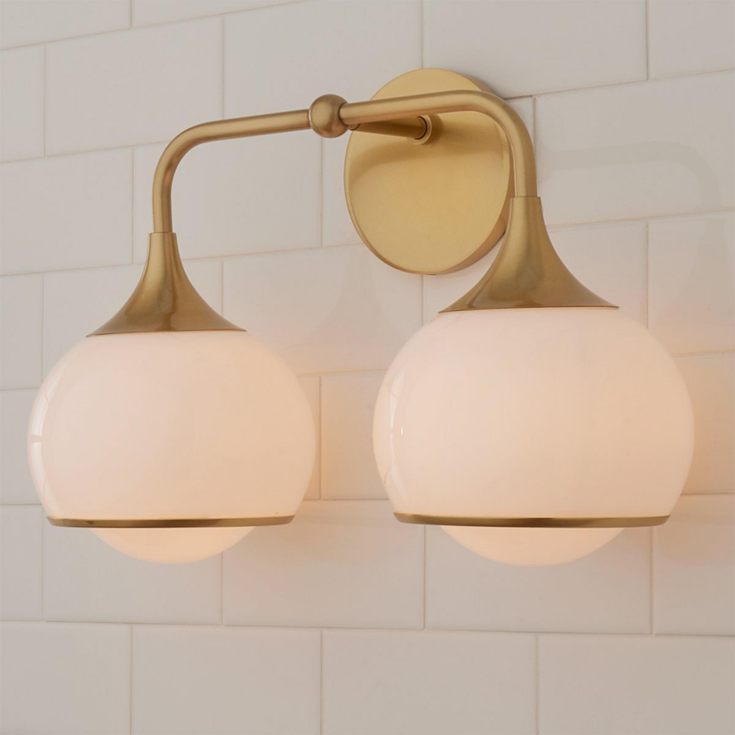 With lots of classic mid-century style, our Diner Drop Vanity Light encompasses all the highlights of a model fixture found in your favorite local hub but modified perfectly for your bathroom or powder room. Featuring double shades for double the appeal, the hardware adds a layer of glossy beauty with rings around the outer shades, and matching curved arms, caps, and backplate.