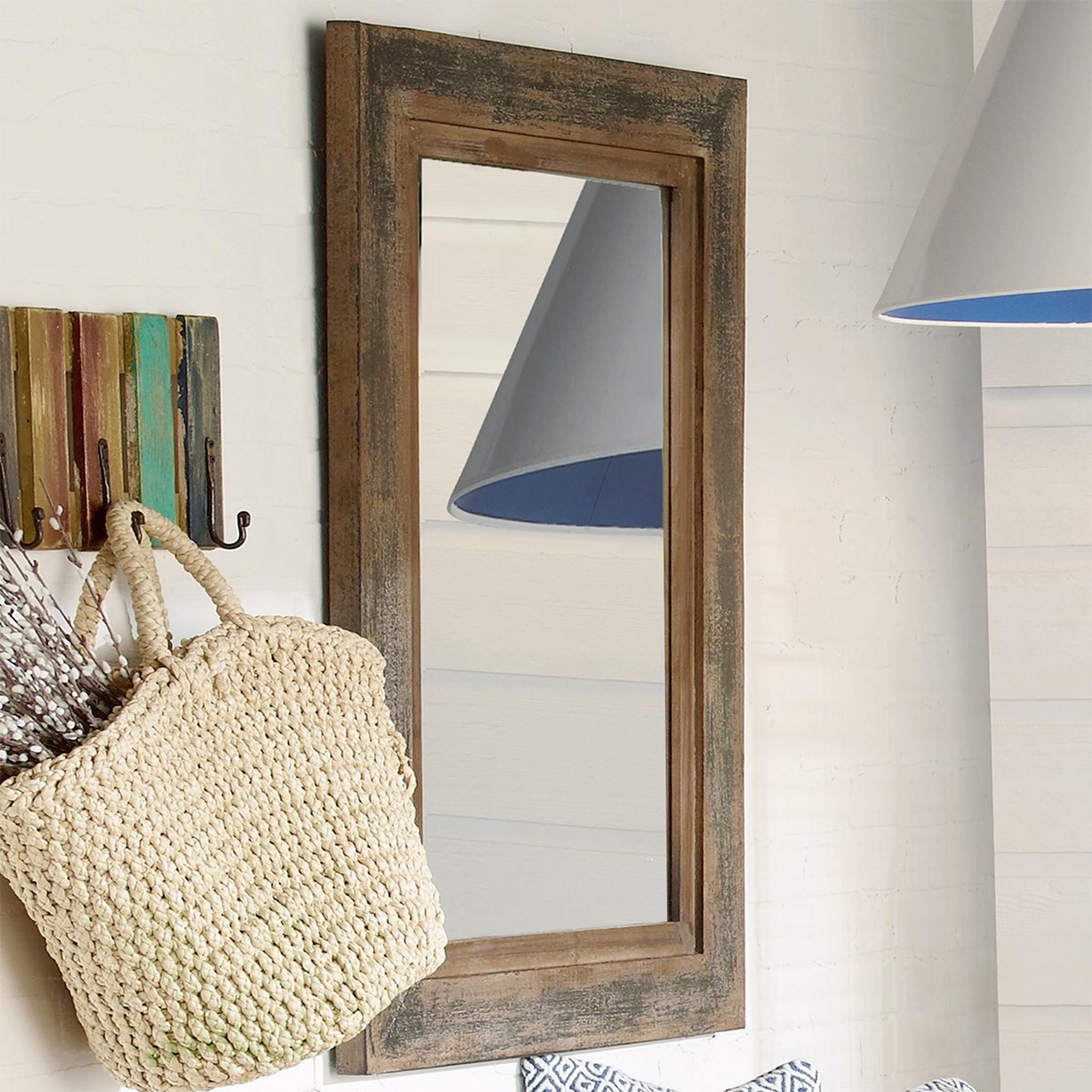 This simple rustic mirror utilizes a beautiful aged wood frame in a heavily distressed, Slate Blue and Rustic Ivory finish perfect for adding charm to country spaces.