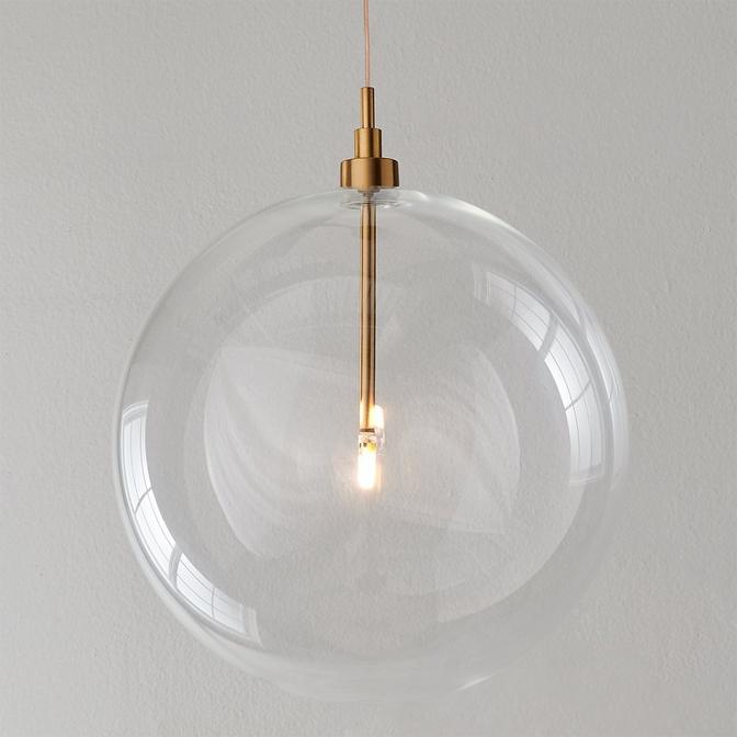 This dreamy globe pendant adds a touch of creativity and intrigue by hanging a hand-blown glass globe at an adjustable height. The central thought-provoking dot of light functions like a spark of brilliance as it hangs above. Bi-Pin T4 LED bulb included.
