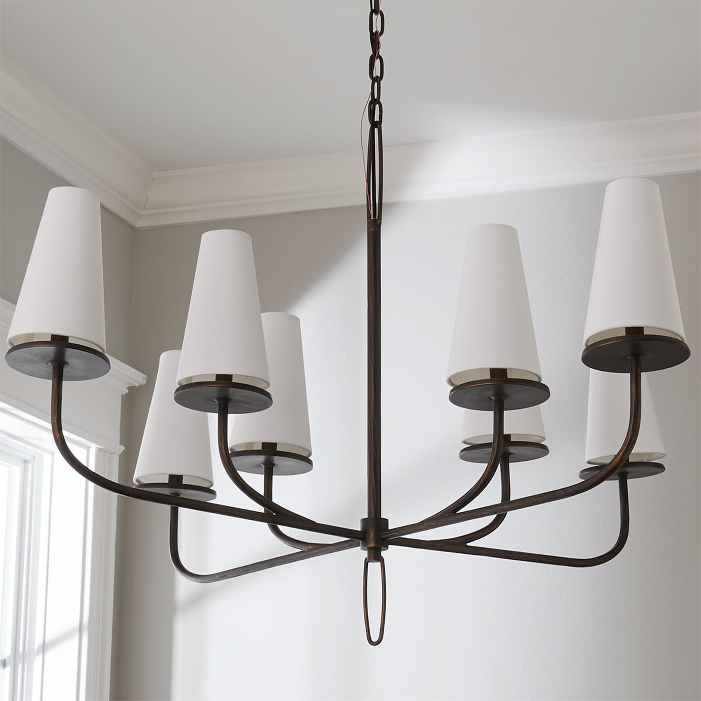 Our Drexel Collection has a transitional tone to its features with a slight nod to a lodge setting. Their bronze frames are adorned with long cone shades that have a resting plate beneath. To be displayed together and create a unique uniform look throughout your home or hung separately, these pieces will be a warm addition.
