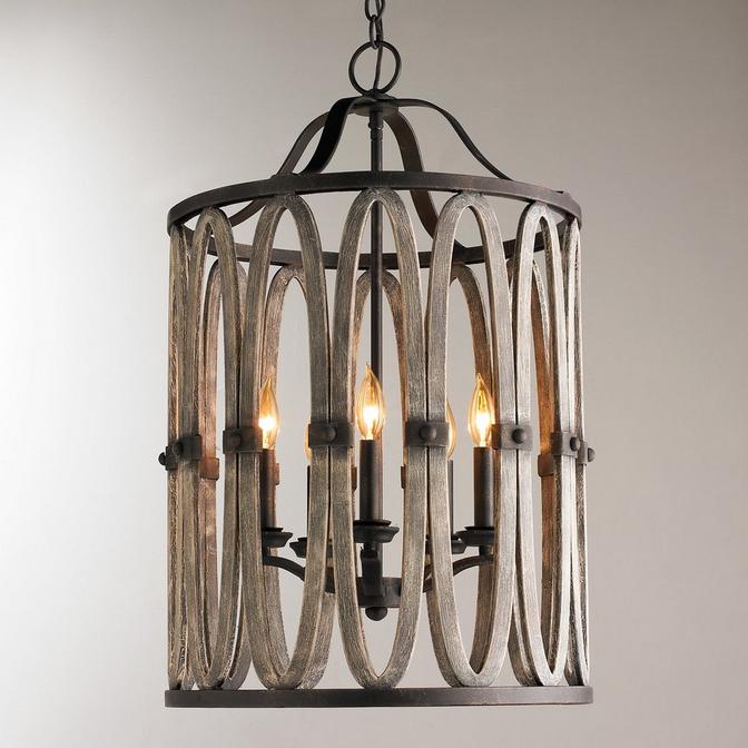This transitional Entwined Ovals Pendant is large and stately enough for your foyer. Metal ovals made to look like driftwood surround a candelabra style cluster finished in bronze with golden highlights.