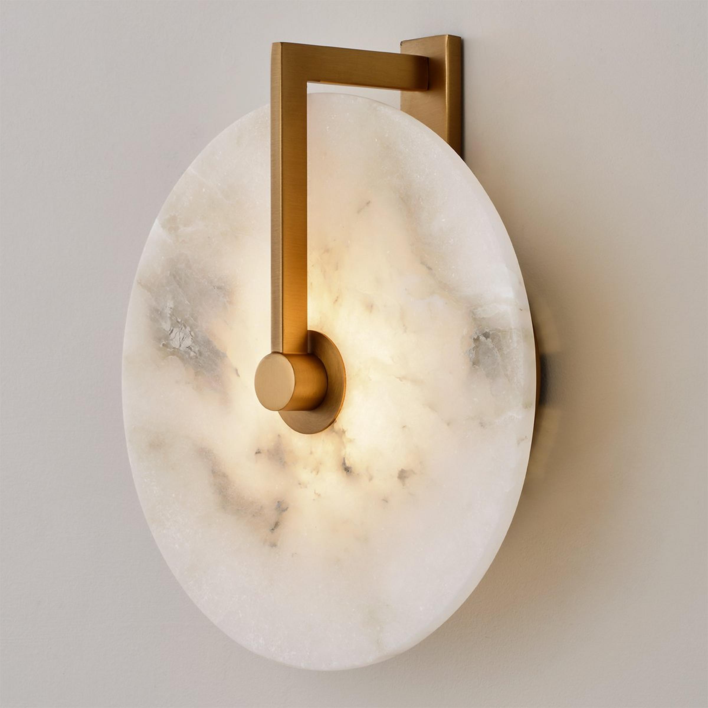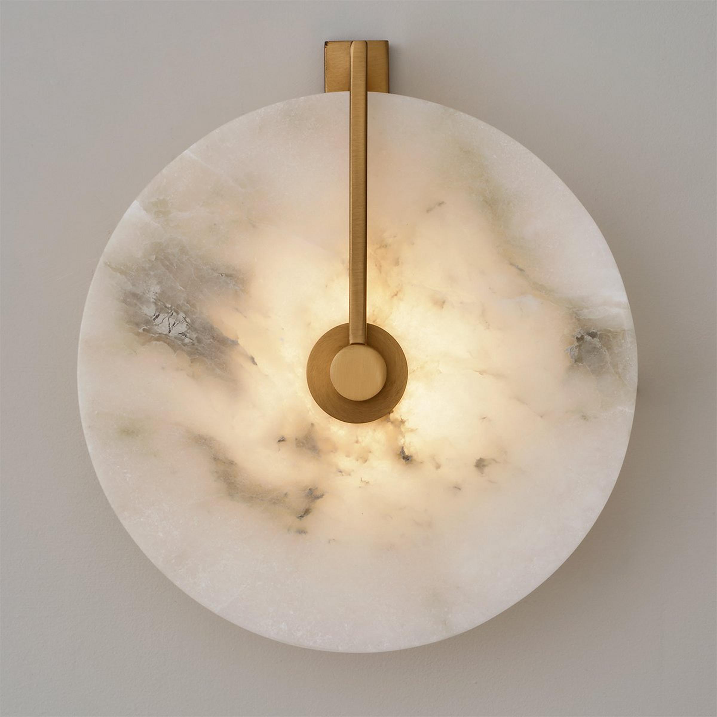 Strikingly modern with a natural touch, Drios makes an elegant statement in any home. Lit from within by integrated LEDs, its round alabaster shade diffuses light for a cozy, heavenly glow. Versatile and beautiful, this gorgeous fixture also doubles as a ceiling light. Please note that like all natural materials, the appearance of alabaster is highly variable. Each piece is unique.