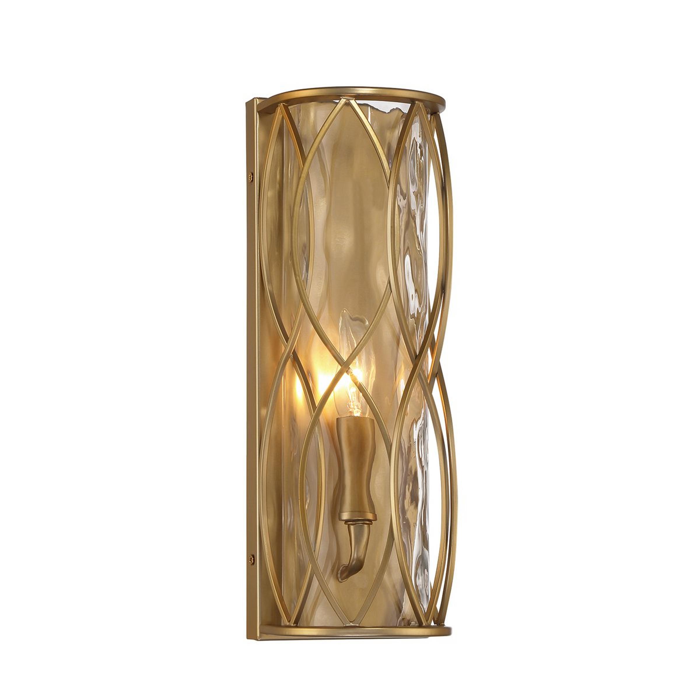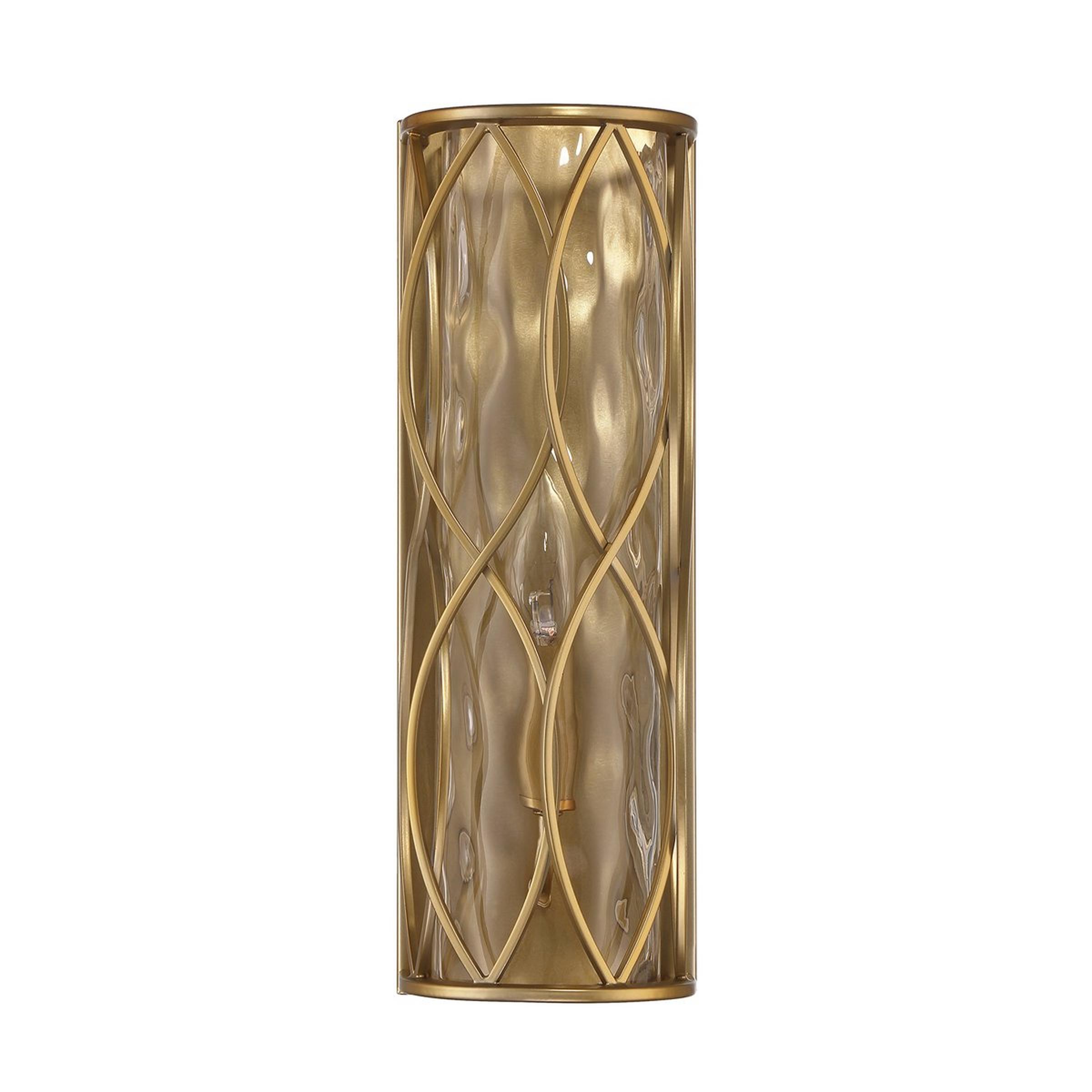 This sconce's rippling water glass catches light for a gorgeous effect, especially when paired with the curved lines of the overlaying hardware. Edinburgh is a moody and atmospheric piece that can add a subtle ambiance to a hallway or pair with other lights in a bathroom. Its slim cylindrical silhouette is ideal for enhancing the warmth in a room and helping define your style, a beautiful example of a sconce that's perfect in a myriad of locations!