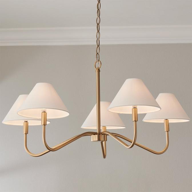 Designed for the Drew & Jonathan collection, Eldon transforms a classic silhouette into a refreshing and new design! Beautifully curved stems in rich metallic finishes create a luxurious presence that pairs well with its crisp linen shades. Eldon highlights minimalist elegance and versatile appeal for luxury interiors. Its clean lines and warm ambiance lend a timeless balance. Equally suited to minimalist, classic, or contemporary settings. Eldon brings understated refinement to dining rooms, living spaces, and foyers.