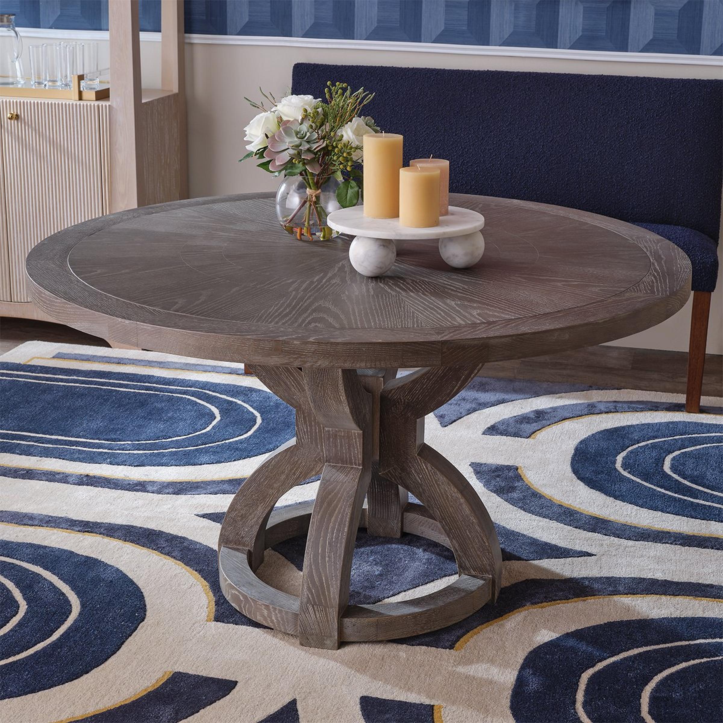 The Elea Dining Table showcases a circular tabletop that harmonizes with a smaller round base. The table's design features graceful curved lines and a soft finish, contributing to its versatility and compatibility with a wide range of designs and styles. Whether adorning a breakfast nook or a formal dining area, this table infuses a sense of comfort and warmth to the space.