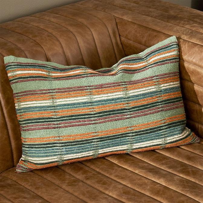Designed by Justina Blakeney, this cozy cushion features a beautiful, striped design in lush, earthy tones. The removable cover includes a hidden flap closure, complete with a zipper.