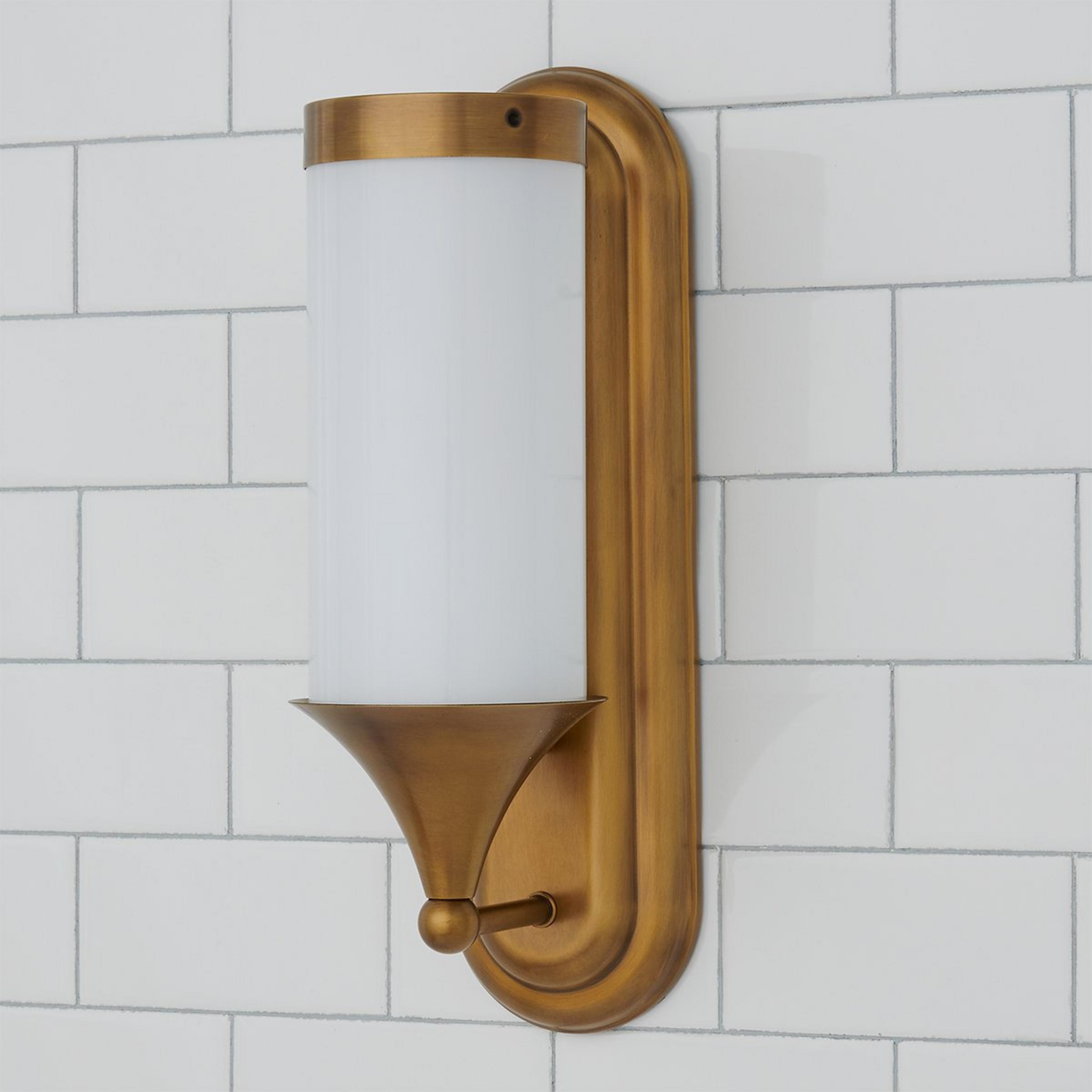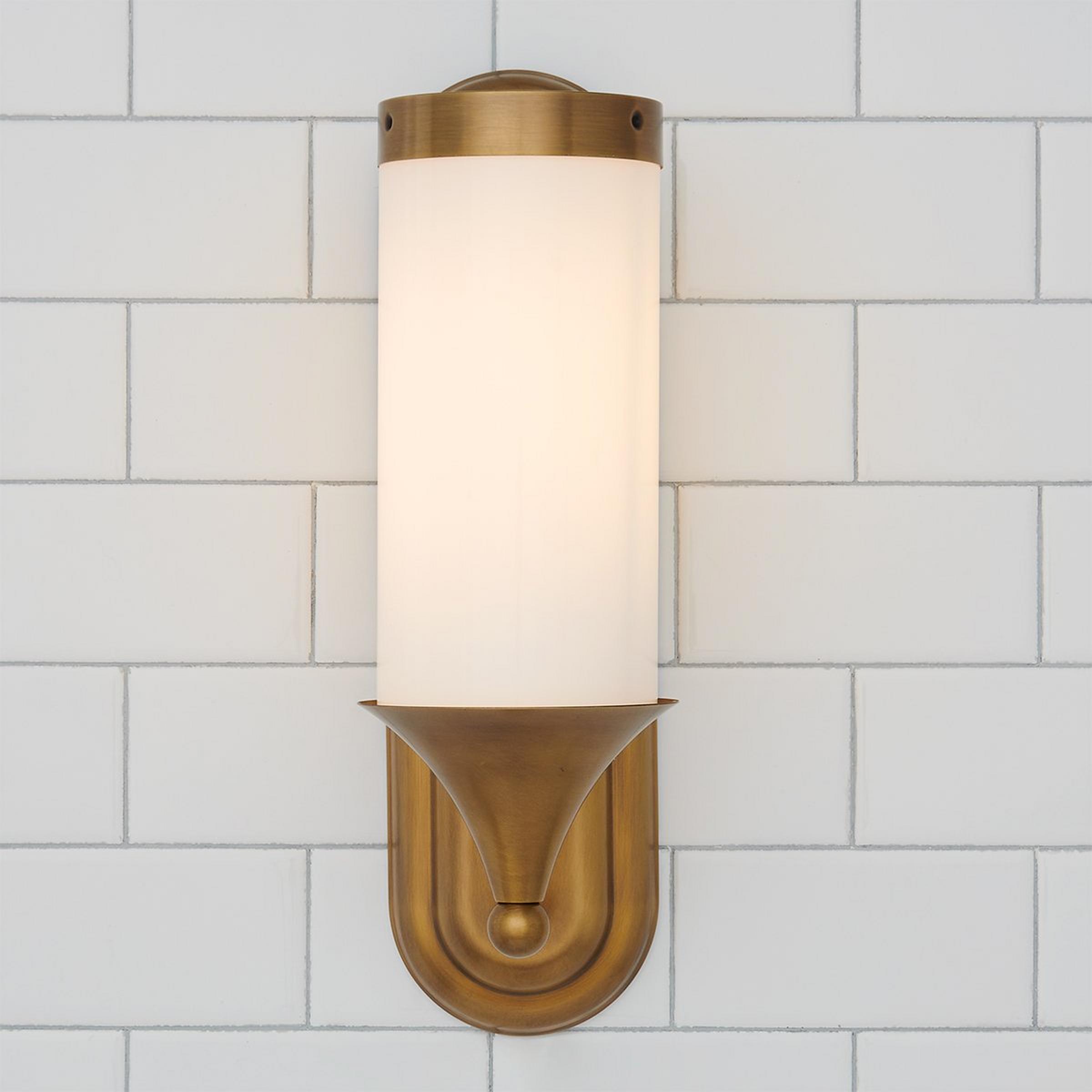 The lively yet elegant Flatiron Vanity Collection from Erin & Ben Co. imparts a playful sophistication to traditional bathrooms. Inspired by Erin and Ben’s first renovation and home together, a repurposed flatiron building in Laurel, Mississippi, these substantial yet airy fixtures nod to the past but embrace the now. The triangular motif of flatiron buildings (thus named for their resemblance to clothes irons) is echoed in the conical base of the Flatiron Vanity Collection; with timeless opal glass shades and historic finishes, these fixtures will keep your space fresh and vibrant for years to come. These fixtures are assembled by hand in our Richmond, VA, production facility.
