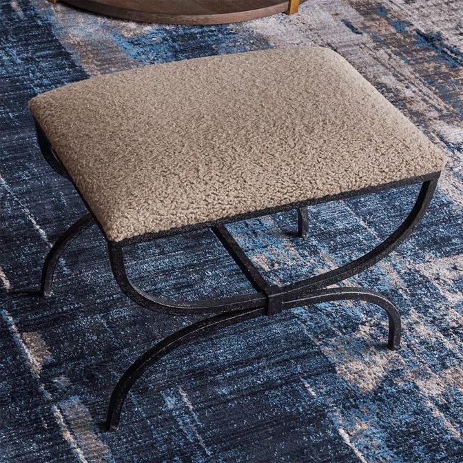 Our Estado Bench boasts old-world charm with its heavily textured iron base finished in aged black. Featuring a latte-colored faux shearling on top, this bench offers big style and comfort in a little package.