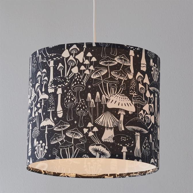 Step into a world of enchantment with our Fairy Ring Shade Pendant, featuring a black background adorned with white mushrooms. Perfect for nature lovers or those seeking a hint of whimsy in their space, this captivating design brings a touch of magical charm to any room, creating a subtle yet striking focal point. This exclusive pendant is handmade by our in-house artisans in Richmond, VA.