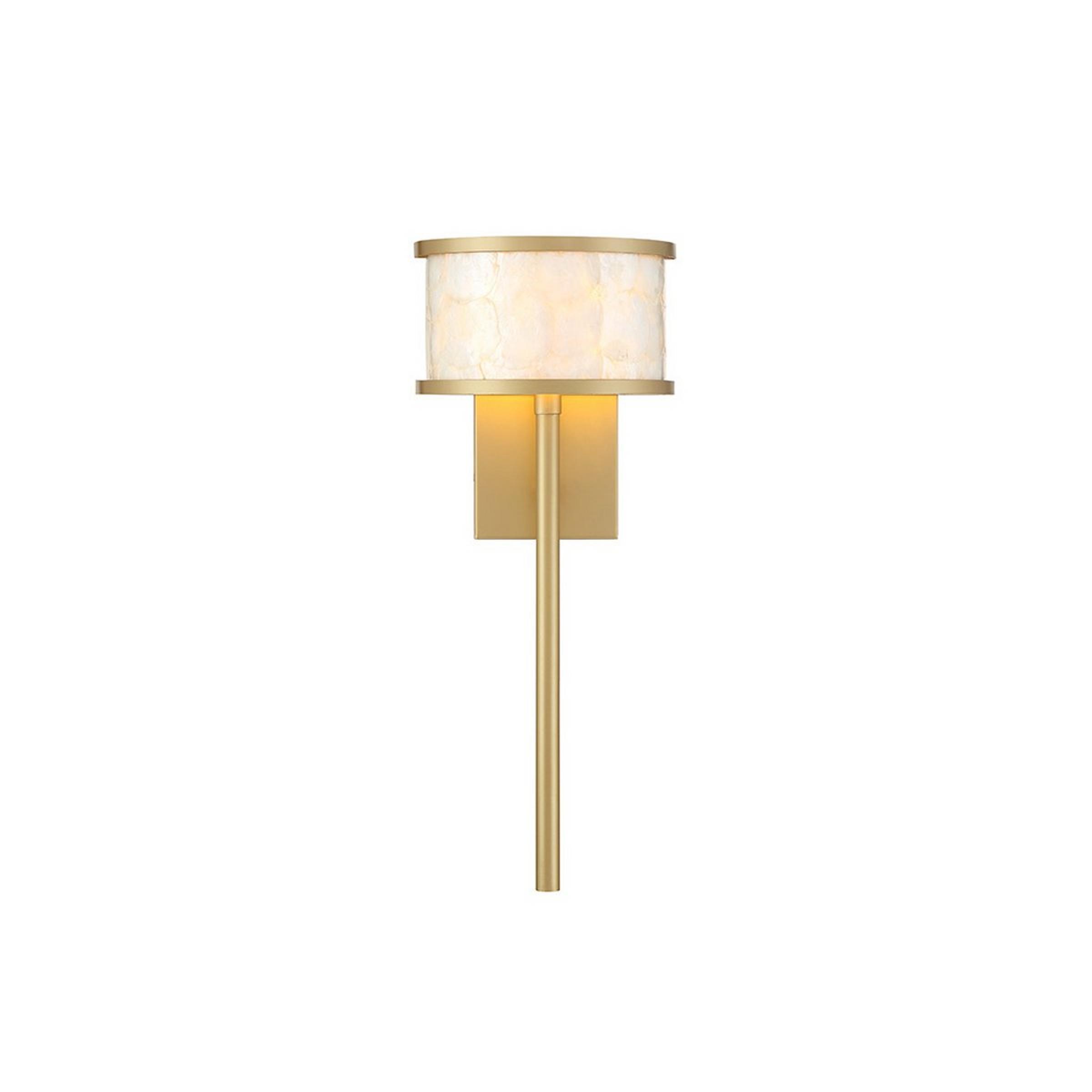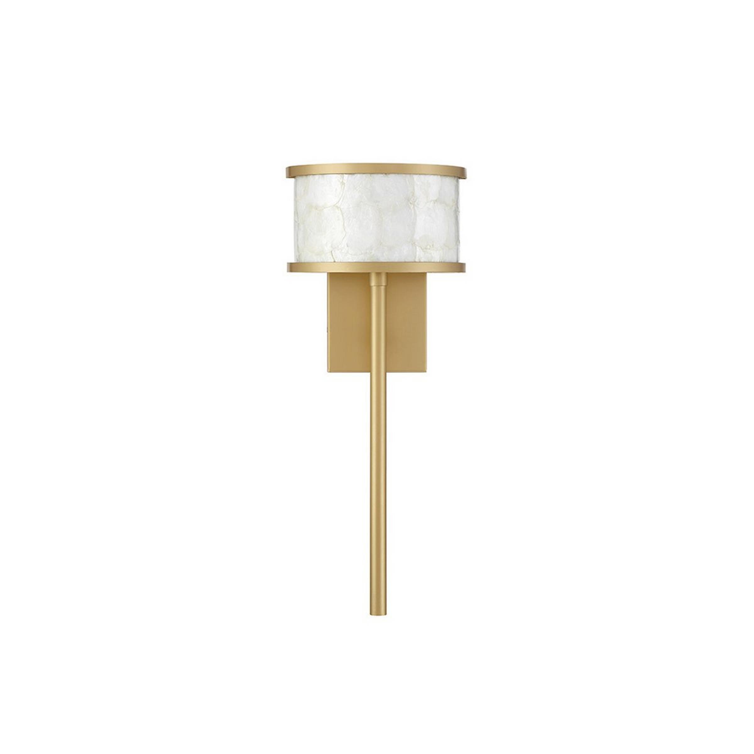 The Farida collection's shell and metal shade evoke a timeless elegance alongside its modern frame. Award-winning designer and Television host Breegan Jane creates the look of luxury by utilizing raw natural materials and juxtaposing them with metallic finishes. Completing its look of cohesion through contrast, this sconce's sleek silhouette pairs perfectly with its bold drum shade.
