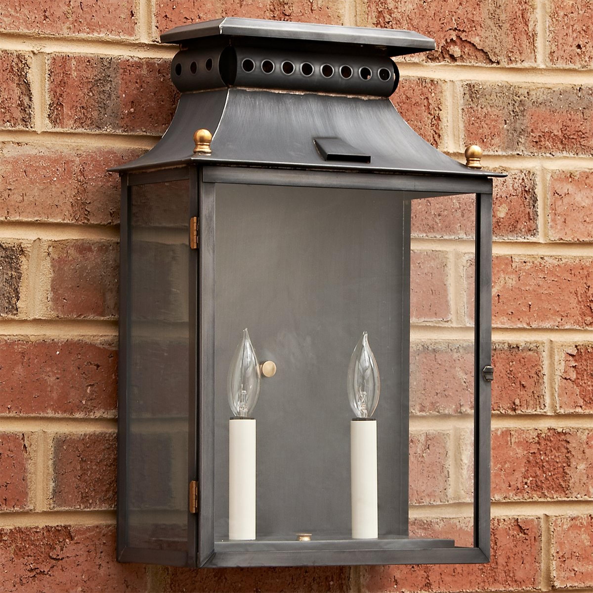 This impressive lantern looks as though it came from the home of one of our nation's founders. Handcrafted and finished by our team of local artisans in Richmond, Virginia, this classic fixture will welcome your guests with dignity. Made to order so your home can boast a truly unique outdoor light fixture. Copper and brass are living metals that will change and patina over time, the color and speed of which varies based on environmental factors. Please note: Fixtures accumulating salt in coastal environments must be rinsed regularly to prevent corrosion. Items listed with Clear Coat are finished with a protective clear coating that may help to slow the natural patina of the copper or brass. This can be helpful in preserving the current look of the product, or as a protection against harsh environments.